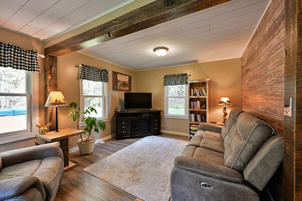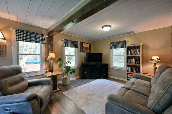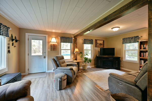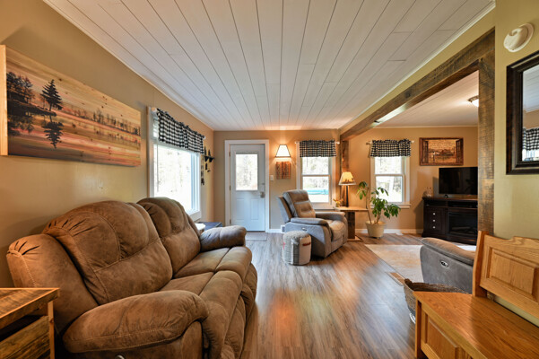 Escape to your slice of heaven in the woods! If you are looking for a location in the hub of tons of recreation opportunities, this is it! Just a stones throw from the Seeley Hills groomed XC ski & bike trails, Sawyer County Forest Land, direct access to the snowmobile trail, close to the Namekagon River Landing and only a few miles from the OO Birkie/CAMBA trailhead. The well maintained home is nestled in the woods on a 1 acre lot & exudes charm and style. You'll love the rustic timbers, shiplap, custom vanities, butcher block peninsula & the space saving storage. The floor plan is functional and features an entry/mud room, main level master bed/bath, guest bath and a lower level bedroom (non-conforming/no egress). Updated with efficiency in mind, the entire basement has been spray foamed which acts as a long lasting investment. Newer garage is 28x36, spray foamed & heated. The grounds of the property are set up well w/ pet fence, paver patio & fenced in garden area. Hot tub incl.