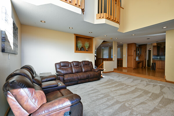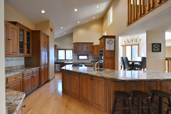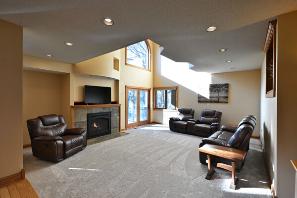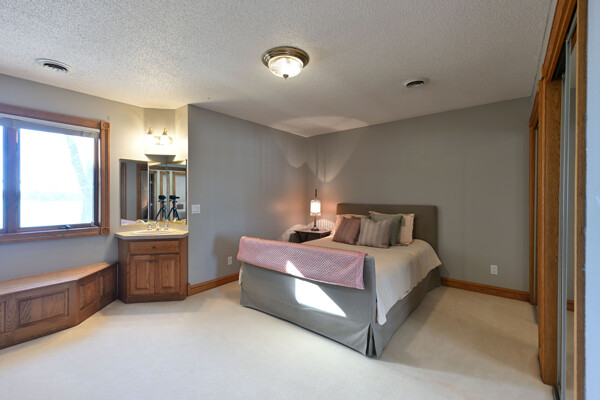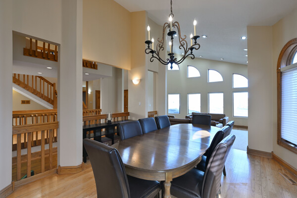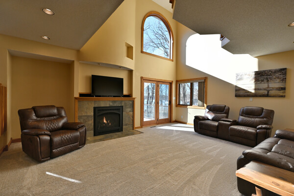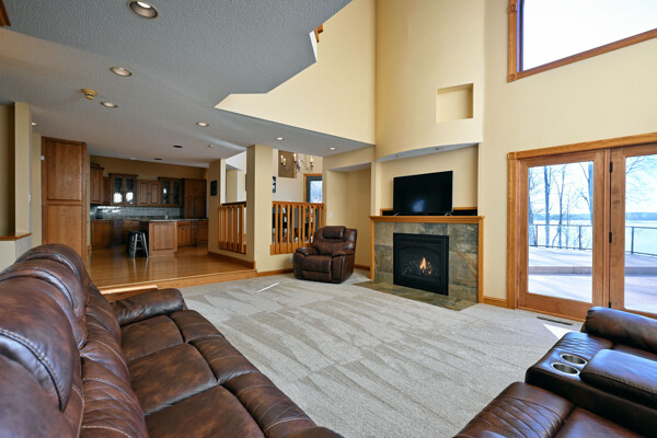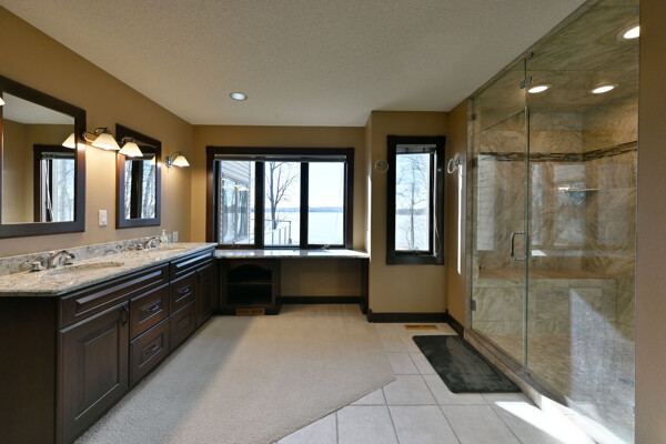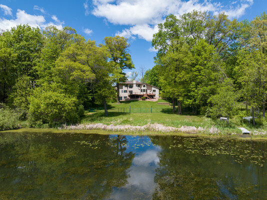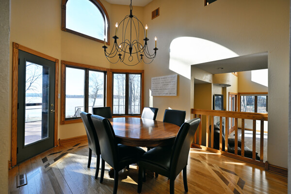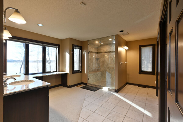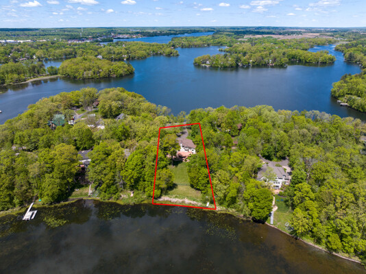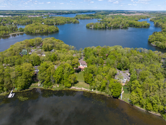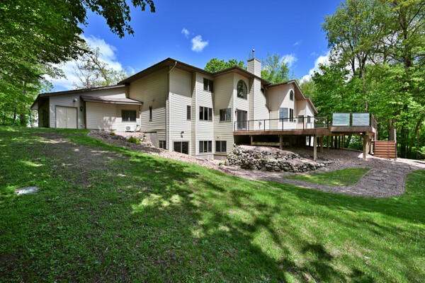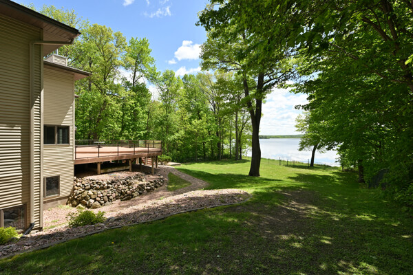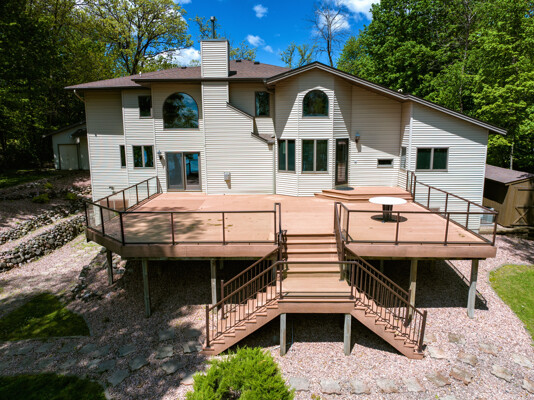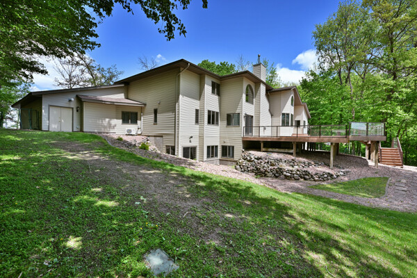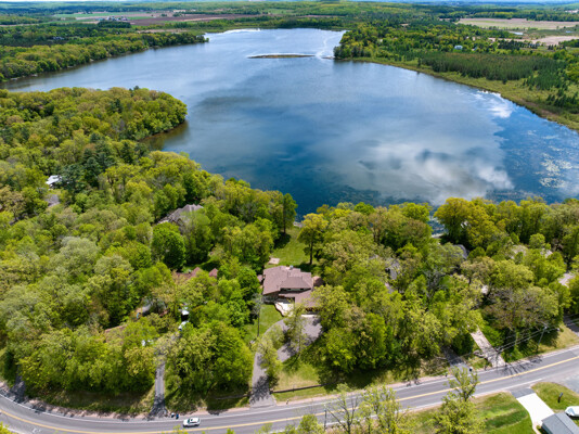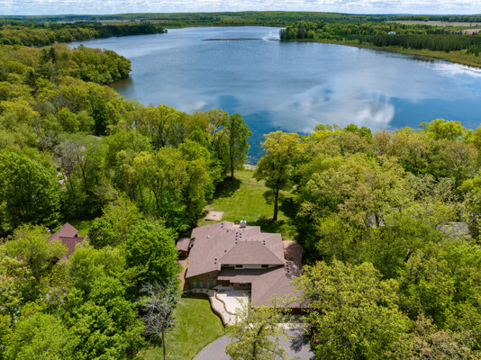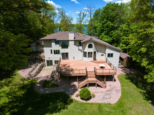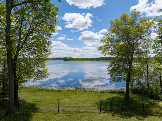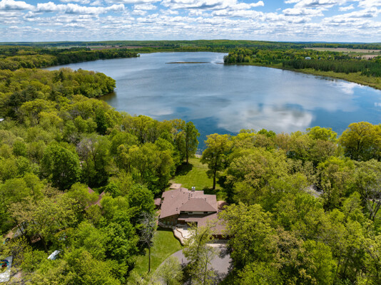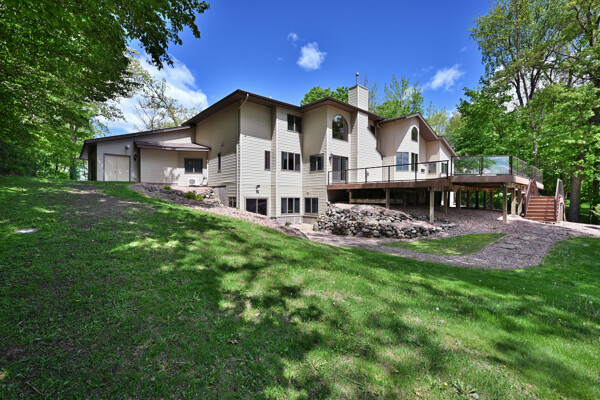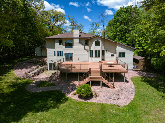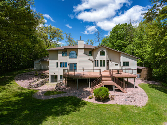 Lake Montanis luxury living awaits! Contemporary design offers over 5,000 sq ft with an abundance in natural light. The main floor features exquisitely finished living spaces, w/ cathedral ceilings, 2 dining areas, chef?s gourmet kitchen with granite counters, custom oak cabinetry, double oven, and dual gas range. The spacious master suite offers elegant amenities and custom tile steam shower. The lower level boasts a large family room with bar and lakeside walkout. Being strategically located, this home offers peaceful Rice Lake views and private level frontage on Lake Montanis. This well-appointed home also features a well-designed upper level home office with 360 * views, spacious bedrooms, beautifully landscaped outdoor areas, private setting, paved driveway, attached 4 car garage and lakeside deck with unobstructed views.