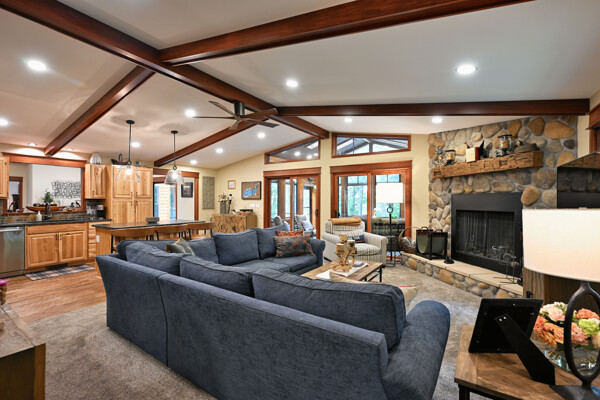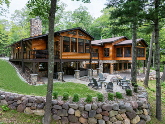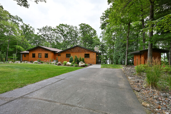 Exquisite lakefront estate on Victory Heights boasting 240? of pristine, flat sandy shoreline with breathtaking views. Professionally landscaped with $150K in enhancements, this 5,816 sq ft residence offers unparalleled luxury and comfort. The master suite is a private sanctuary featuring its own HVAC system, fireplace, office, sitting area, expansive walk-in closet, a 6? x 7? shower with lake views, and a striking concrete soaking tub. Interiors showcase custom hardwood floors, granite countertops, designer lighting, and a chef-inspired kitchen with premium Thermador appliances. Three sets of washer and dryers add ultimate convenience. Heated basement floors lead to an elegant bar and wine room. Additional highlights include two fireplaces, dual generators, new septic, EV-ready garage, high-speed fiber internet, hot tub, and multiple outdoor fire pits. Also features grandfathered in paved driveway down to lake, with lake front storage & fish shed. Room to add pole barn on property.