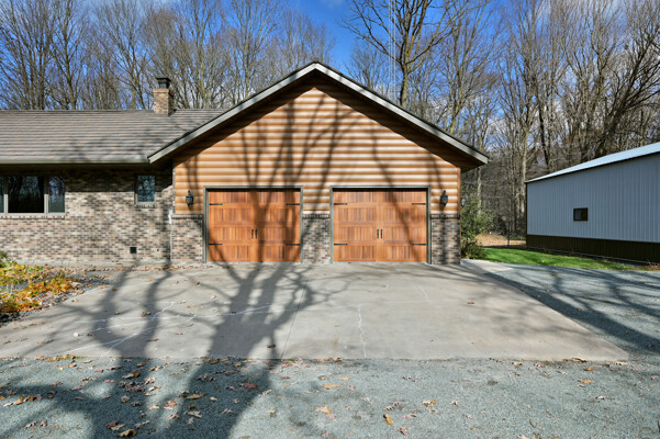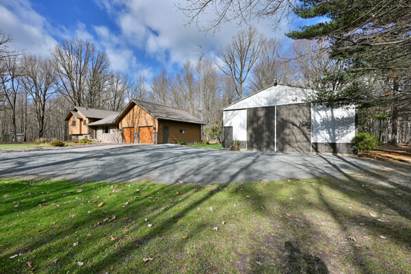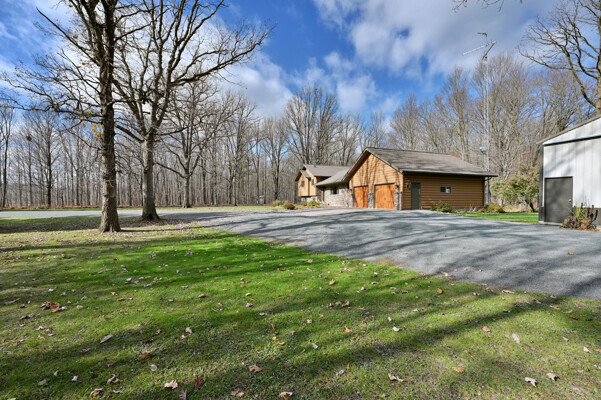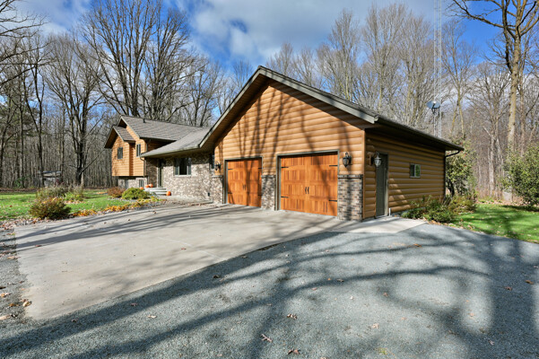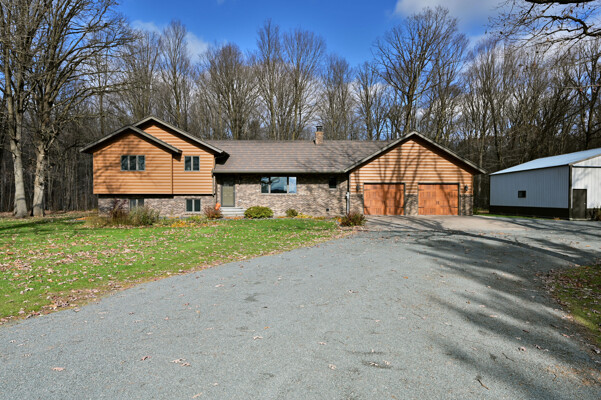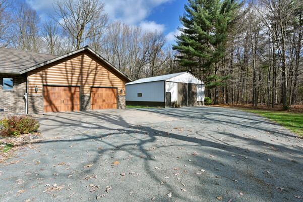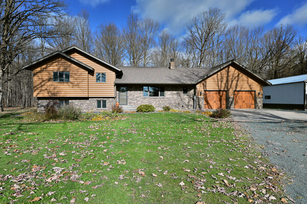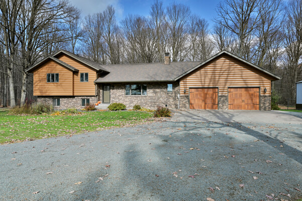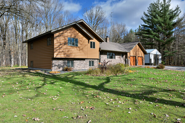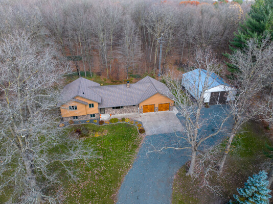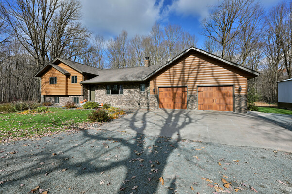 Welcome to this 4 bedroom, 2.5 bath home nestled on 40 prime wooded acres with trails that wind through the property. Conveniently located just moments away from many area lakes, & a short drive to Hwy 53. This one-owner home shows pride of ownership, having been meticulously cared for over the years. Step inside to find an inviting open concept living space, highlighted by a stunning wood vaulted ceiling & a warm, wood-burning fireplace, creating a cozy ambiance for gatherings & relaxation. The convenience of main floor laundry & a spacious entryway closet offering versatility, functioning as a welcoming foyer or easily convertible into a walk-in pantry to suit your needs. The attached finished 2-car garage provides seamless access to the lower level. Outside, the exterior is maintenance free seamless steel siding and a steel shingled roof ensuring both durability & aesthetic appeal. In addition to the attached garage, there's a 32x40 pole shed to accommodate all your storage needs.
