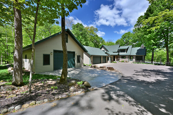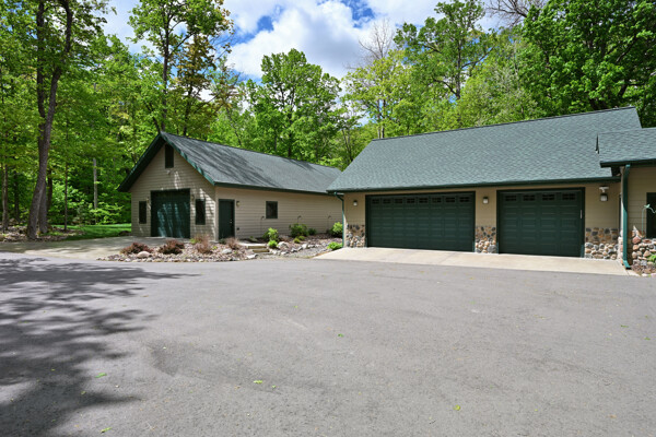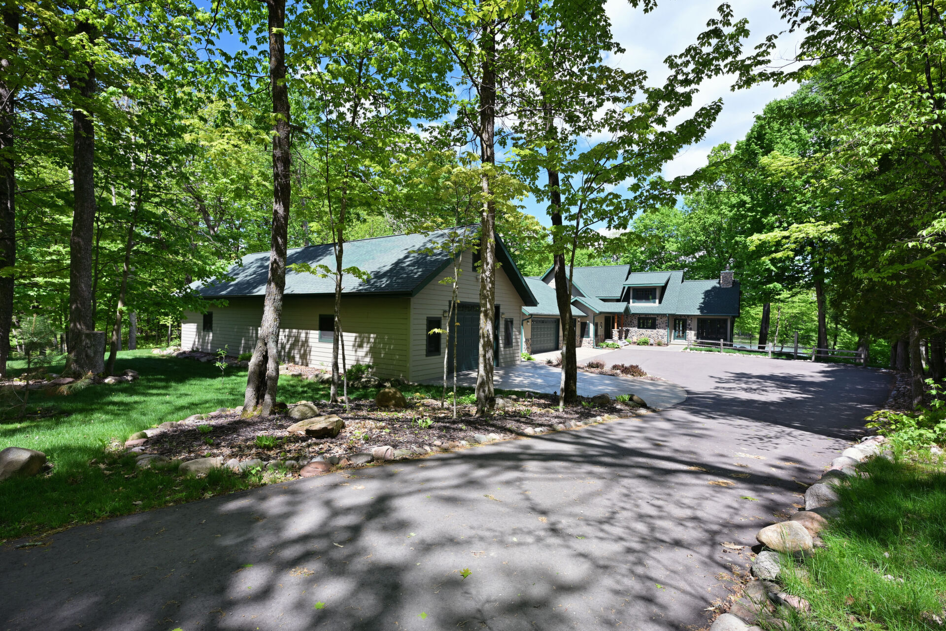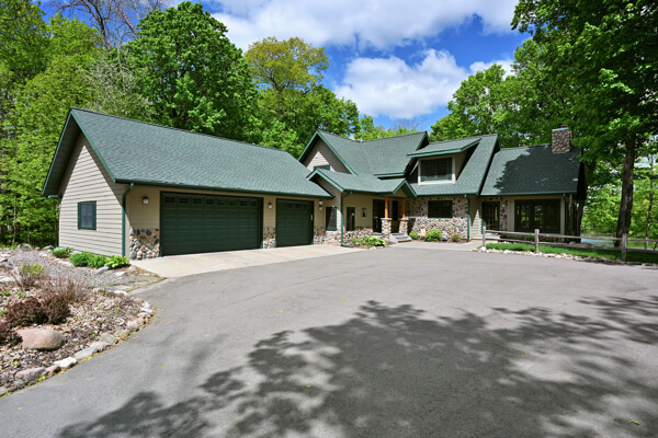 Exceptional family compound nestled perfectly on a private 2.18 acre low-elevation lot. This immaculately cared for 4100 sq ft, 5-BR 3.5-BA home features a flawless open-concept design with numerous updates. Step inside to vaulted ceilings, hickory floors, free-flowing kitchen, and main-level suite. Relax in the great room in front of a majestic fireplace or unwind in the recently added sunroom w/ Ledgestone fireplace creating a warm and inviting atmosphere. Outside, enjoy beautiful landscaping, maintenance-free decks, concrete patio w/ stone pillars & new asphalt driveway. Large, lake side yard is ideal for family games while listening to the peaceful call of the loons. Storage galore with attached 3-car garage, 26x58’ heated shop with a home gym & bonus room, new 30x36’ pole building. The Red Cedar Chain offers 2,400+ acres of recreation, fishing, stunning scenery, a boat-up golf course, and a restaurant/pub with live music. Prime location near ATV & snowmobile trails. New Roof '23.