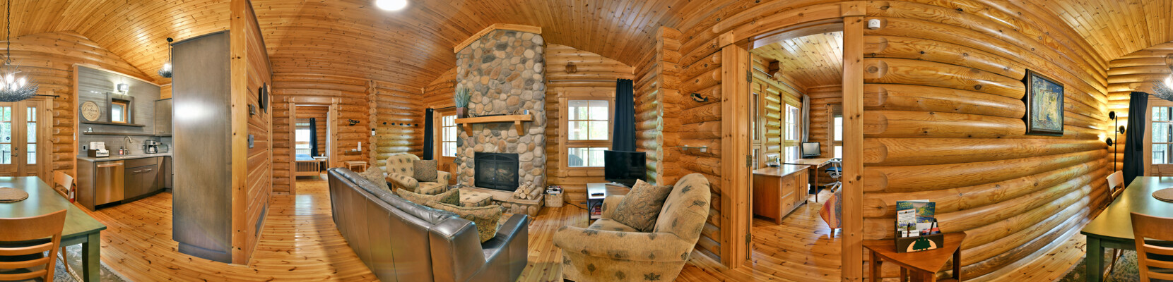 Prime location for outdoor enthusiasts! Bike for miles from your front door on beautiful wooded roads. A few miles away go riding on the nationally recognized CAMBA mountain bike trails and when the day is done there is a bike washing station at the cabin. Or check out the area hiking trails and world-class Birkebeiner Trail cross country skiing, just a short drive away. Enjoy the natural beauty that surrounds this unique log cabin on the 2 extra-large covered decks, catch some sun on the south-facing patio or gather around the rocked firepit area.
