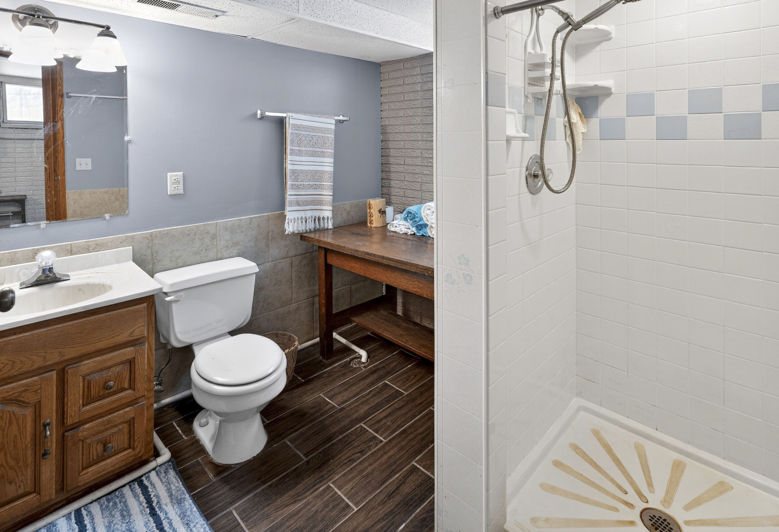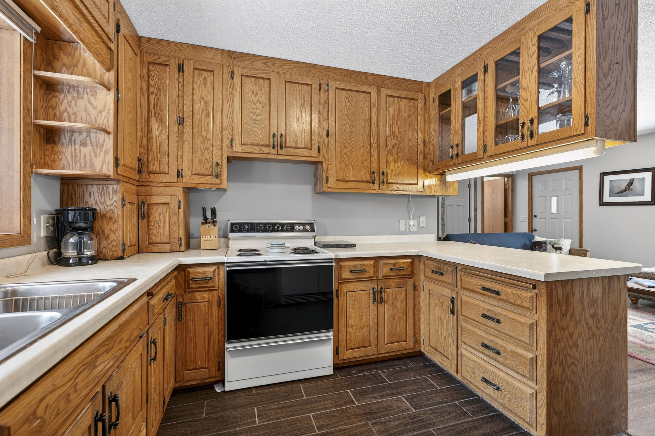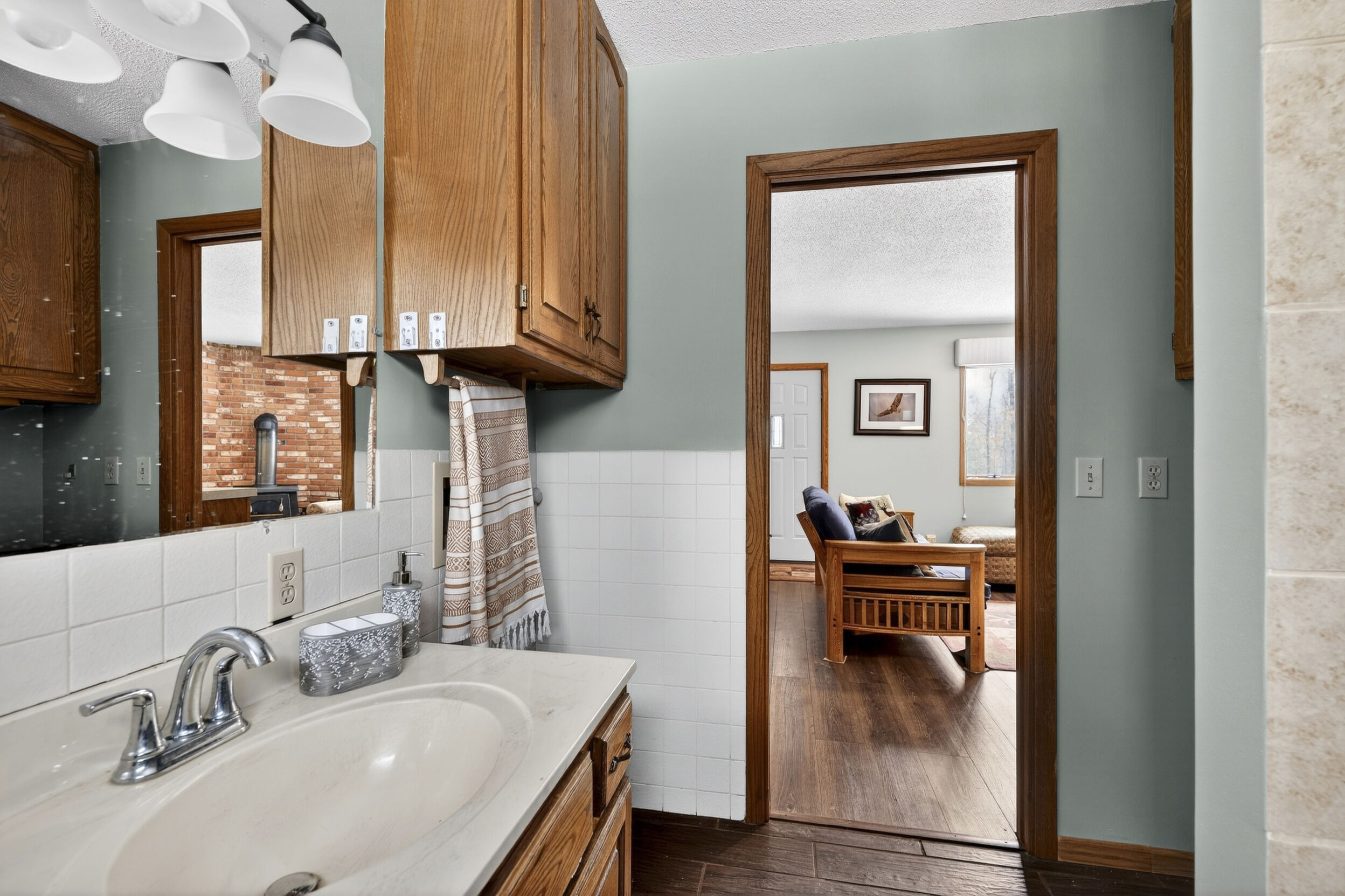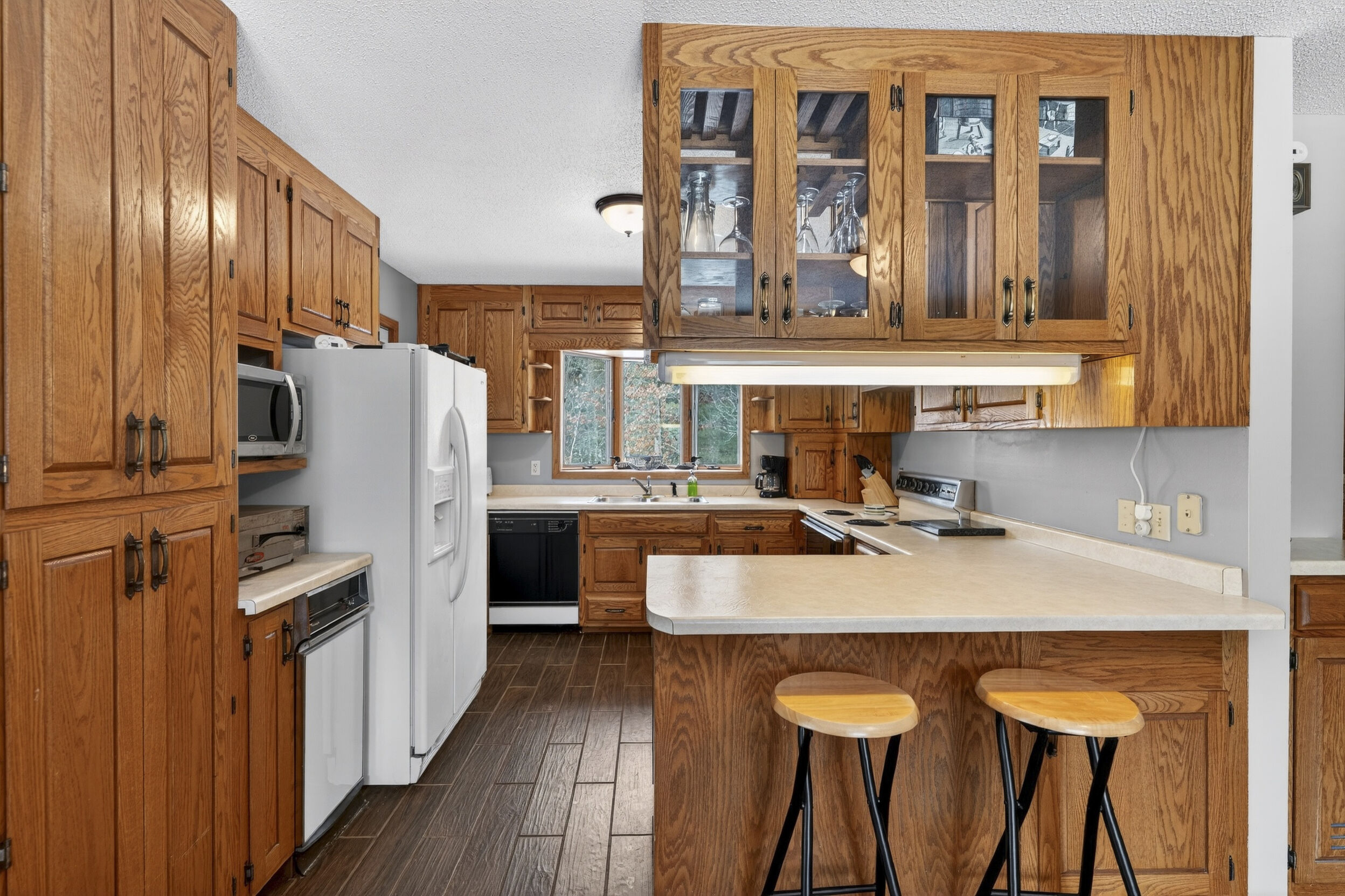 Lodged at the end of cul-de-sac on over an acre, centered within towering pines and mature oaks this enchanting four-season cabin/home is where rustic charm meets modern flair. Your personal haven awaits, with a remarkable remodel that whispers tranquility. As guests arrive, they are greeted by a