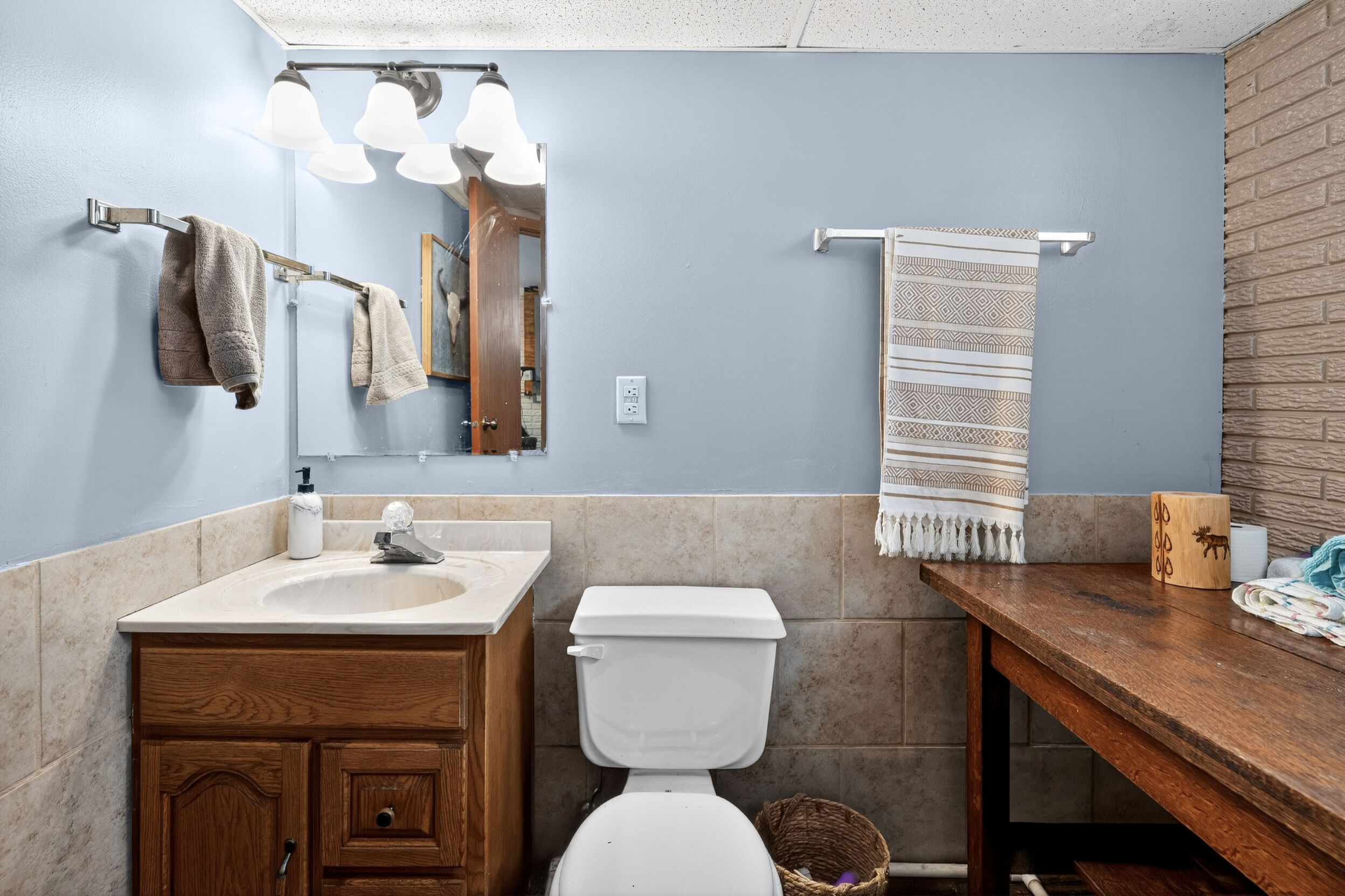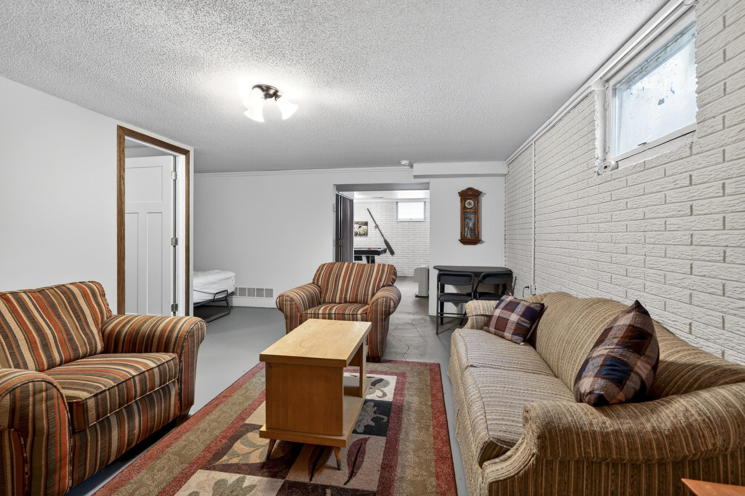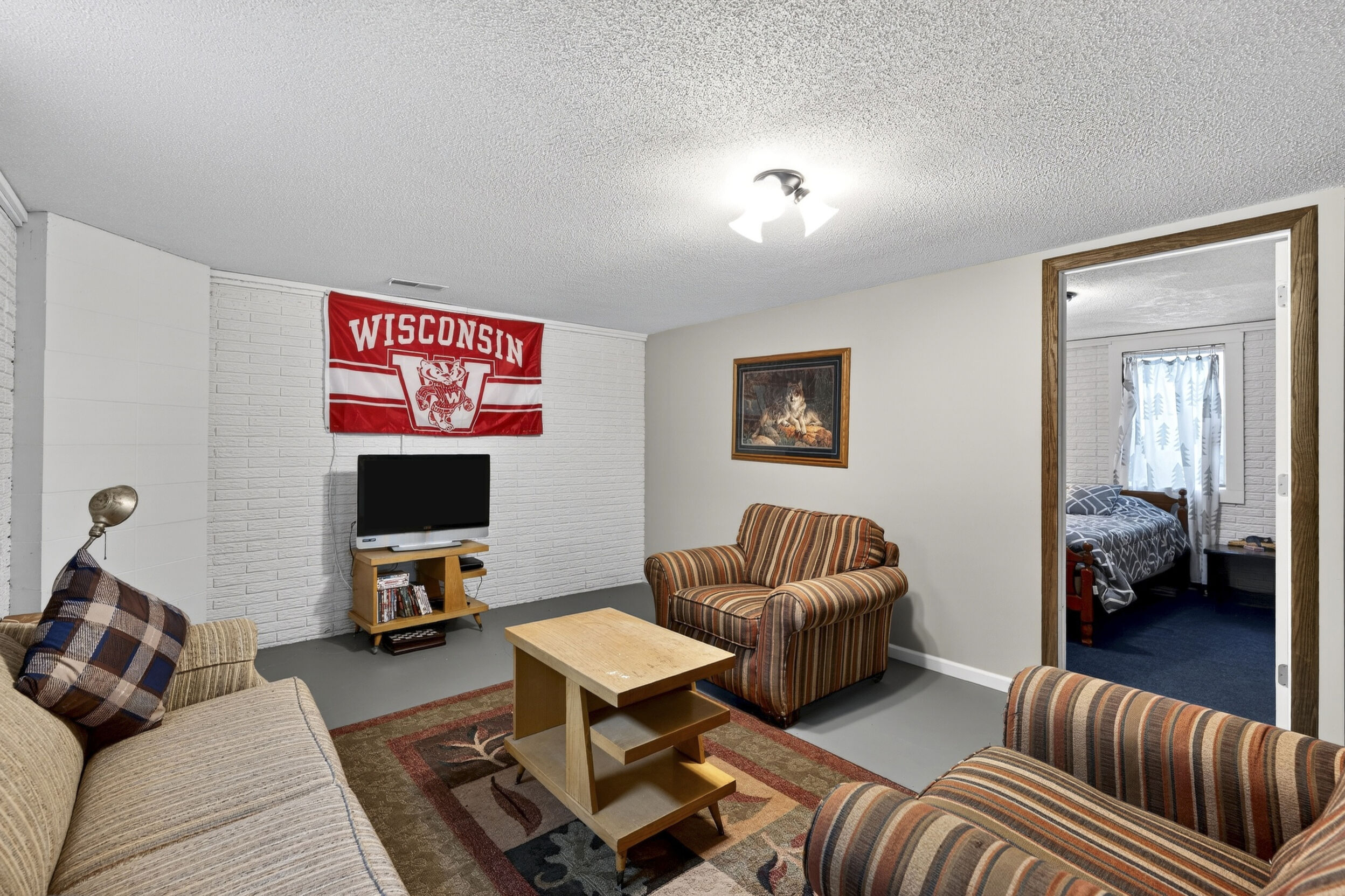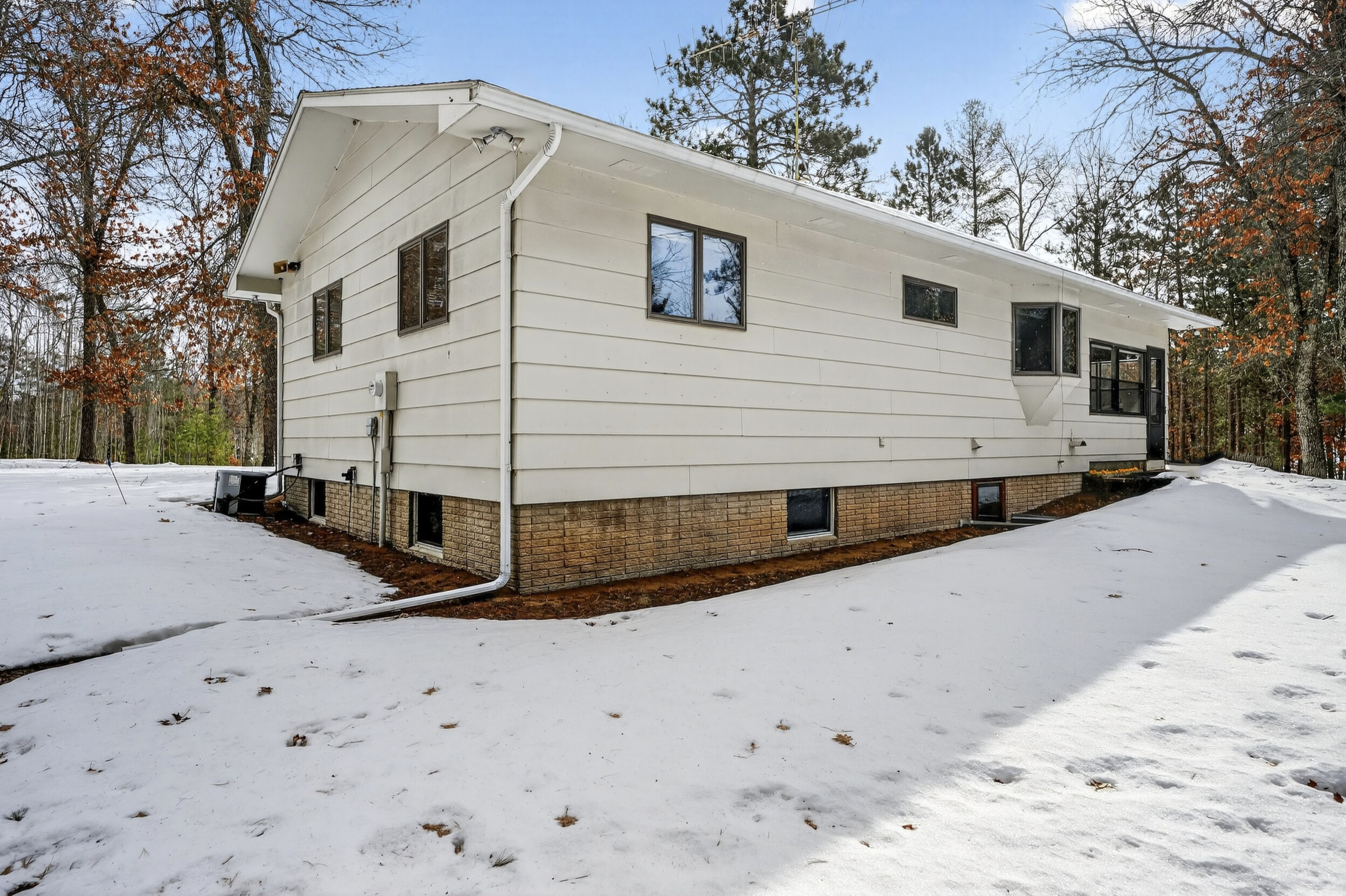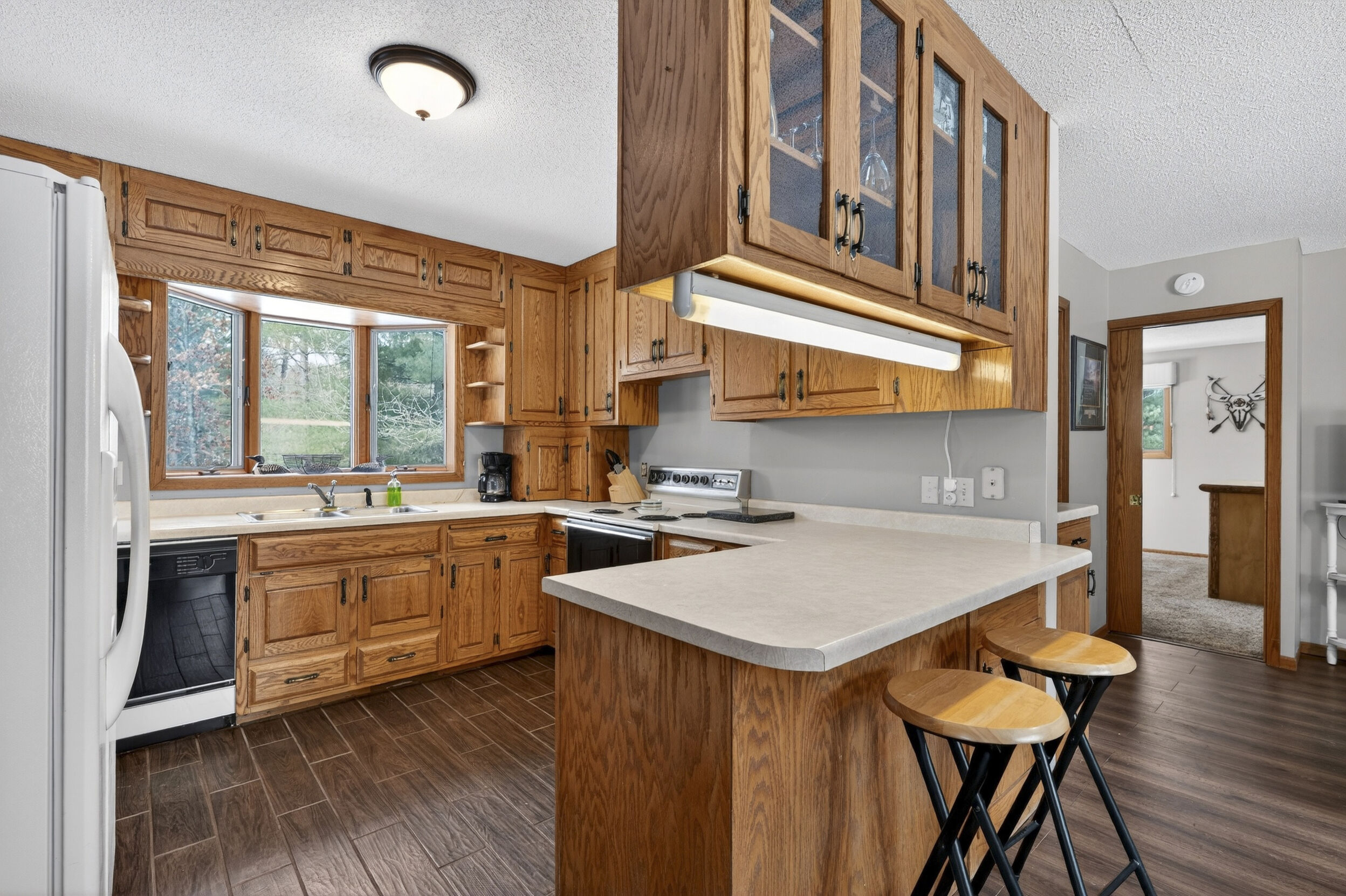 window-to-window seasonal porch—perfect for dining, card games, or lively storytelling sessions. Inside, the open kitchen with a breakfast bar flows into a living area where a cozy wood burner beckons. The main floor boasts two inviting bedrooms and a full bath with laundry options, while the lower level surprises with two family areas, an extra bedroom, and bath for visiting guests. Just a few steps away, the detached garage features dual overhead doors, capable of sheltering boats, UTV/ATV, golf vehicles or storing summer toys. Here, nature and nurture blend seamlessly, offering east Cadotte beach a couple miles away. storing canoe & kayaks on the lakeside racks or drop your boat at the launch. As a Voyager Village member