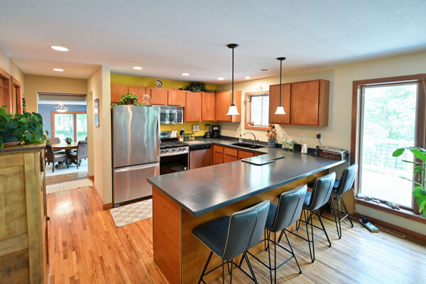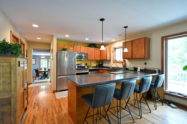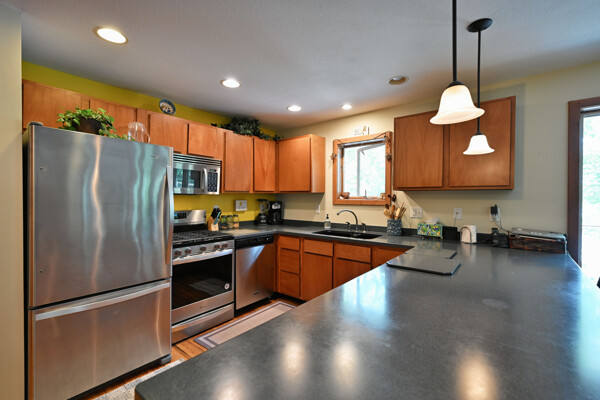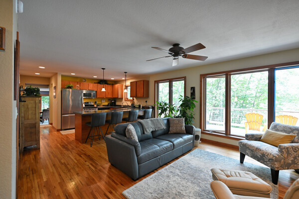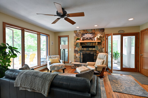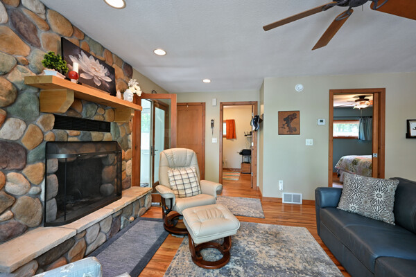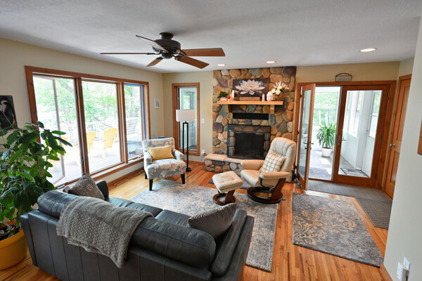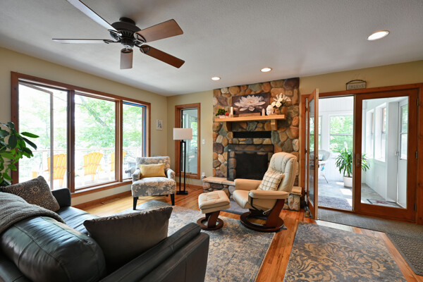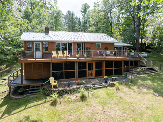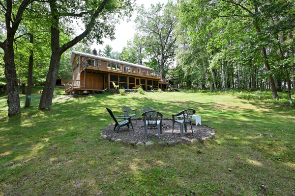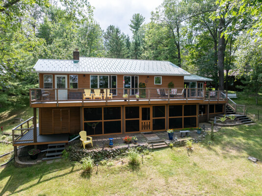 Middle Eau Claire Lake - 3 bedroom, 2 bath home has two fireplaces and two screen porches with extensive maintenance free decking located on 218 ft of sand frontage on the tip of a peninsula overlooking beautiful Middle Eau Claire Lake. Metal roofs, whole house generator system, hardwood floors, 2 car heated garage with 1/2 bath and finished loft. Some furnishings included, Northwoods pontoon boat with 28hp and 3 yr old dock. Relaxing firepit lakeside, plenty of yard area and privacy with outstanding shoreline.