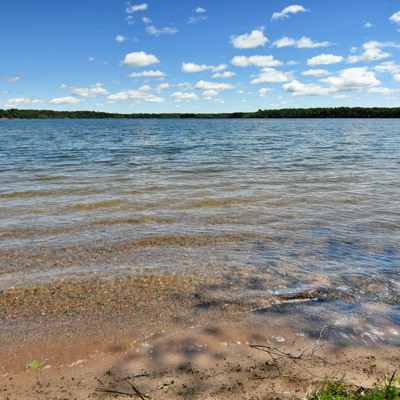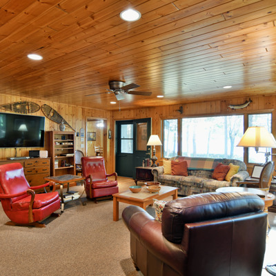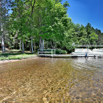 A spacious 1 level cabin on 2 acres plus fantastic frontage on crystal clear Upper Eau Claire Lake. You will enjoy the large living room area, fully equipped Galley style Kitchen and a dining room all with stunning views of the Lake. Each bedroom is in a separate area of the house for a quiet night’s rest. There is an office if you must bring work with you or an out of the way place to work a puzzle while your here. Upper Eau Claire Lake is a very clear clean Lake with great fishing opportunities. The sandy bottomed shoreline with a gradual slope is perfect for swimming! There is even a washer and dryer at the cabin for your convenience. Take advantage of the dock and bring along your boat, the boat launch is just up the road. You'll have full use of the garage and there you'll find a canoe to enjoy too! The cabin is located in Barnes, WI with day trips close by to explore! Only 30 minutes from Hayward, hour to Duluth, MN, 1.5 hours to Bayfield and the Apostle Islands. This is a weekly rental Memorial Day Weekend through Labor Day, but with all this, you might just want to stay for two!