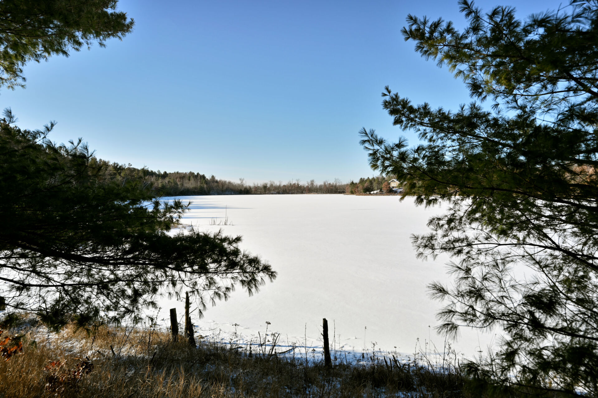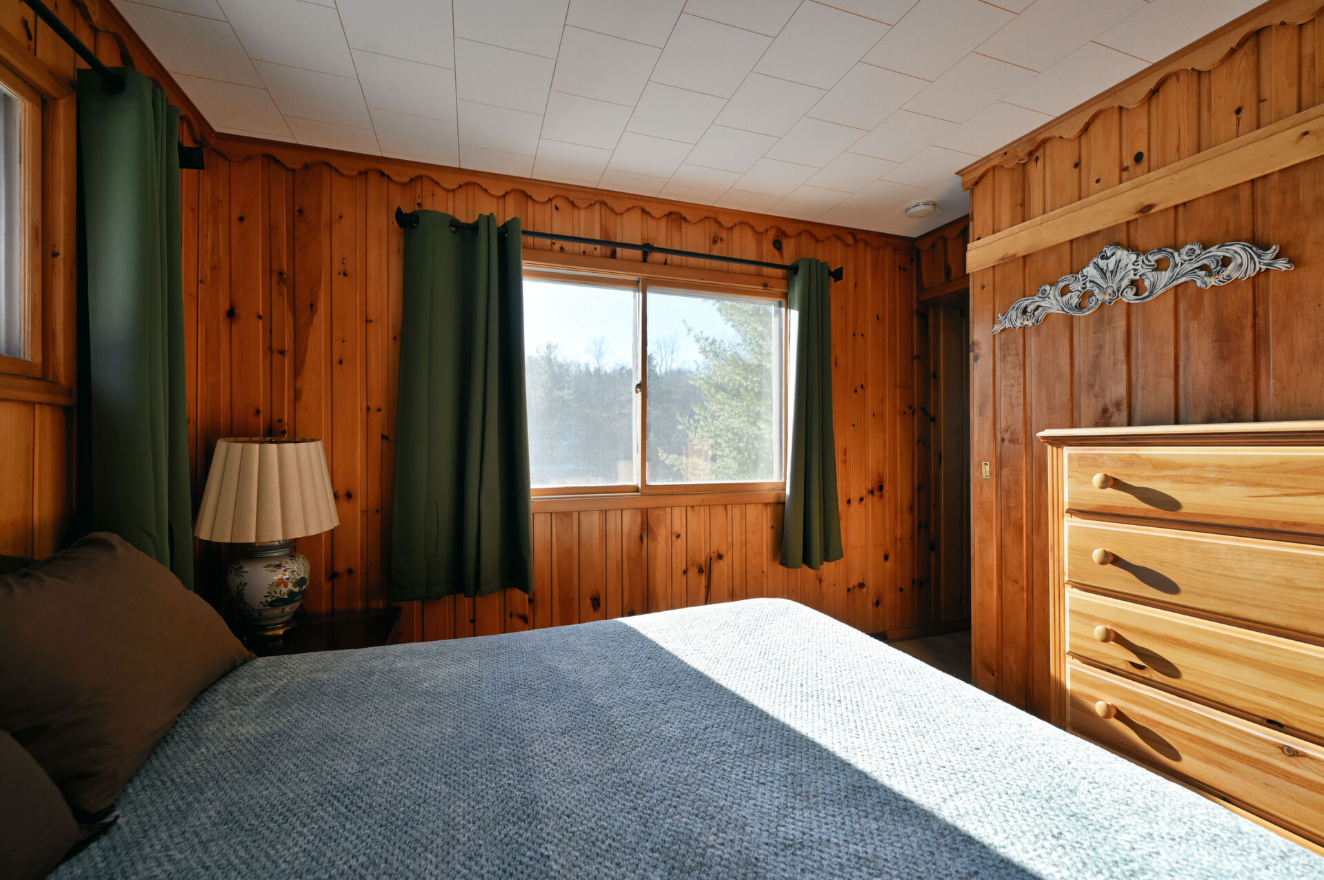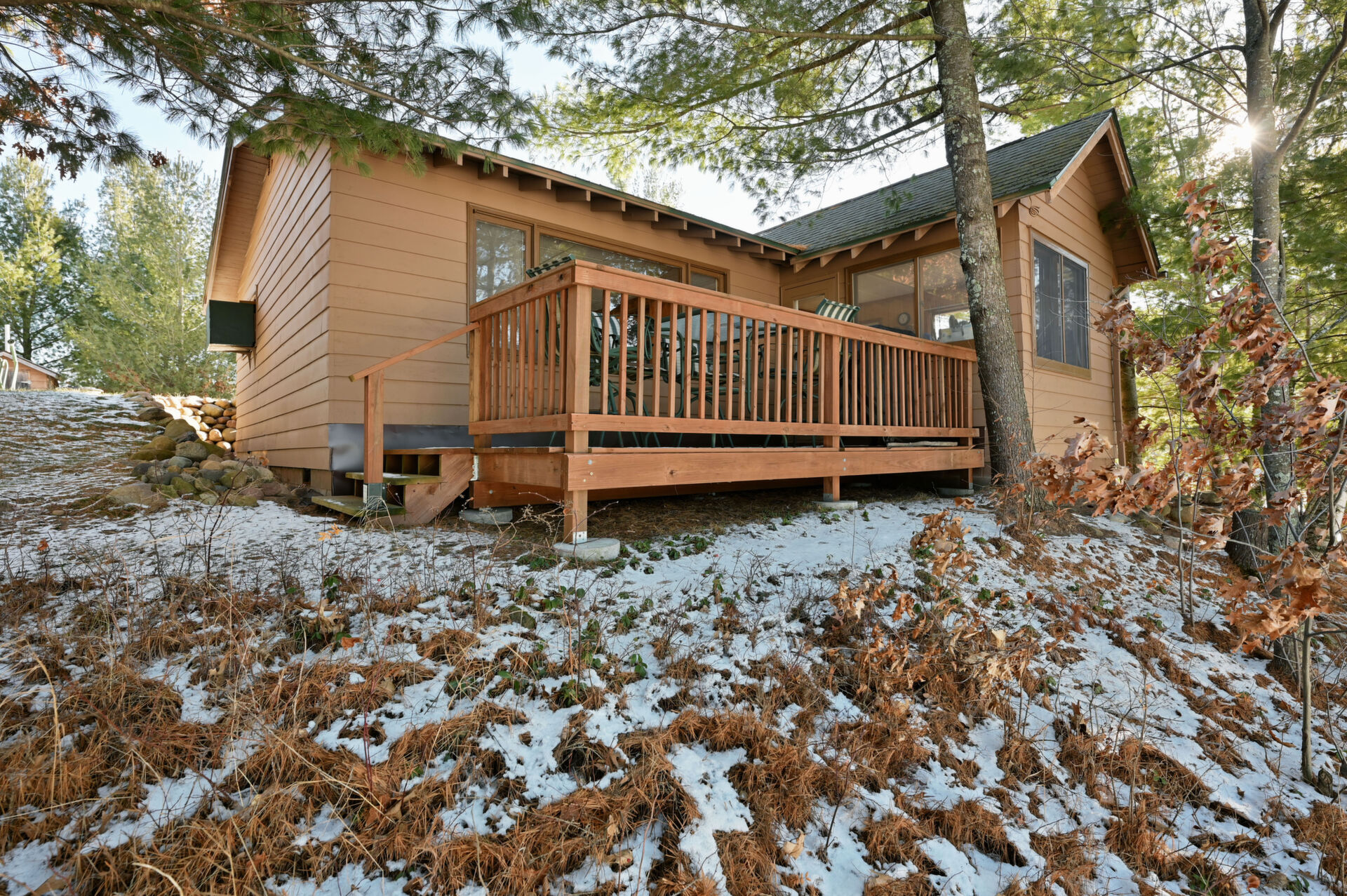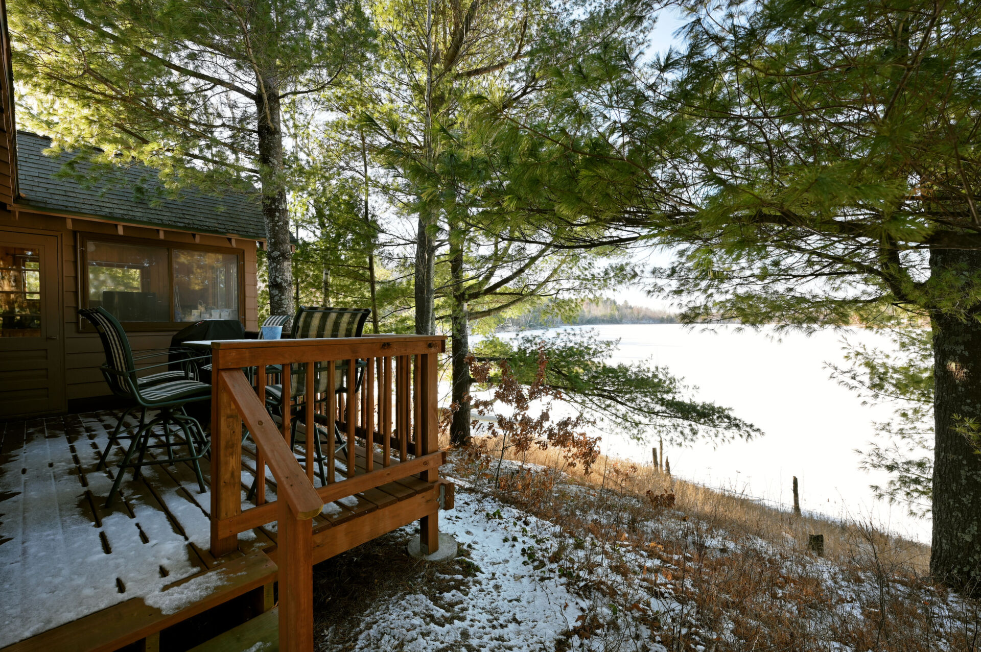 Cozy, rustic lake cottage on hard-to-find peninsula setting surrounded by quiet lake and 30 acres.