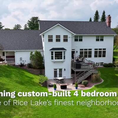 Step into luxury with this stunning custom-built 4-bedroom, 3.5-bath home nestled in one of Rice Lake’s most prestigious neighborhoods. From the moment you enter, you’ll be captivated by the craftsmanship and elegance—featuring rich hardwood floors, a spacious gourmet kitchen, formal dining room, and a warm, inviting living space perfect for gathering. The expansive lower-level family room is an entertainer’s dream, complete with a custom bar ideal for hosting. The one-of-a-kind primary suite is a private retreat, boasting its own office, a walk-in closet, and a spa-like bath with a jetted tub and walk-in shower. Step outside to unwind on the beautiful patio or deck, perfect for enjoying summer evenings, entertaining guests, or simply taking in the peaceful surroundings. Set on a beautifully landscaped 1.35-acre lot, this home offers space, serenity, and style. A 3-car attached garage and a storage shed complete the package—an exceptional opportunity to own one of Rice Lake’s finest.