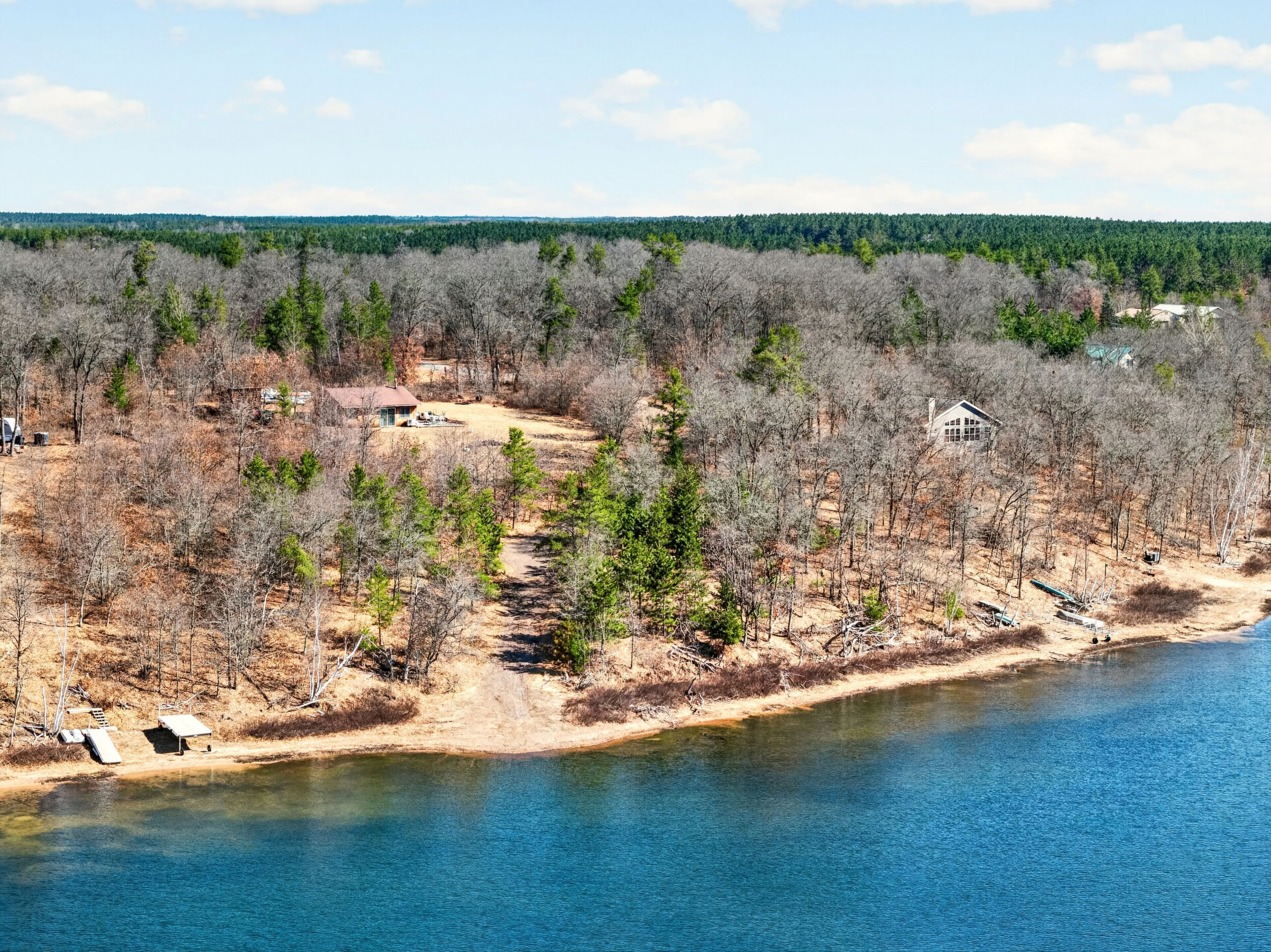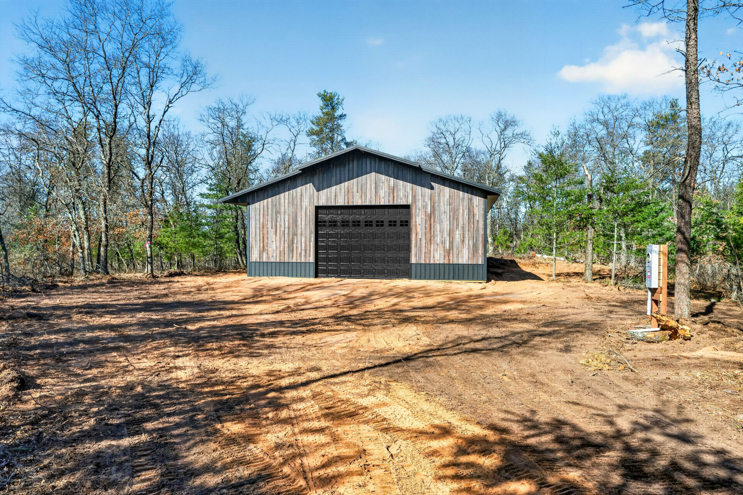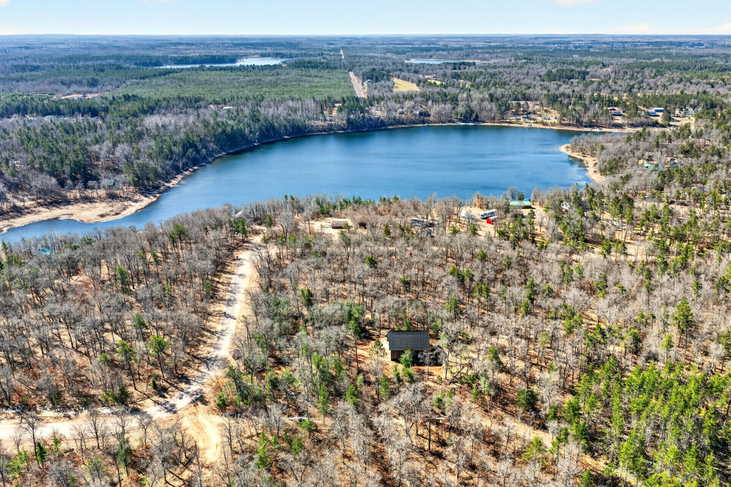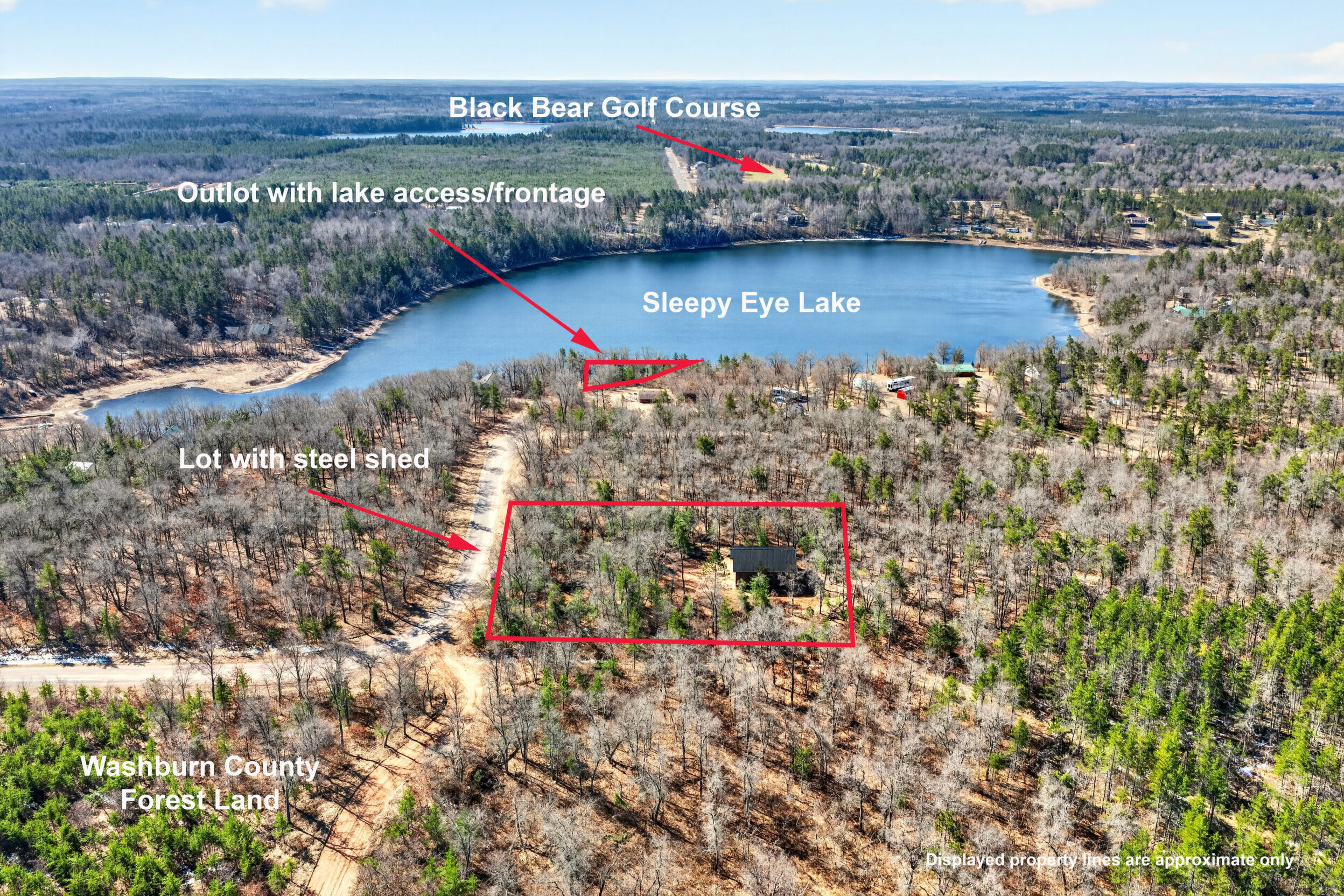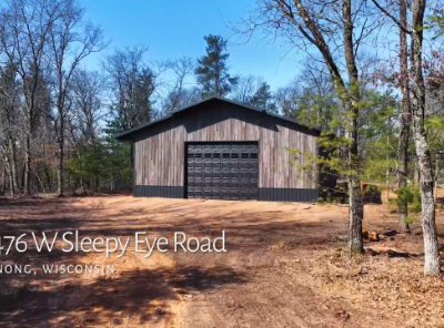 Private wooded lot with lake access/frontage west of Minong with newly constructed 40' x 40' steel shed. Traverse through the hundreds of nearby public acres to the ever popular Totogatic River or grab your UTV/snowmobile to jump on the boarding trails. Sale price includes the lot the shed sits on and an Outlot with @129' of sandy frontage on beautiful Sleepy Eye Lake. Sleepy Eye Lake is 38 acre lake with a max depth of 10', crystal clear water & sandy bottom. Fish include Panfish, Largemouth Bass & Northern Pike. Shed has custom rustic steel siding, large overhangs, 14' sidewalls, 12' x 16' steel insulated garage door and power pedestal with RV hook up. This package is an outdoors enthusiast's dream scenario that offers it all.