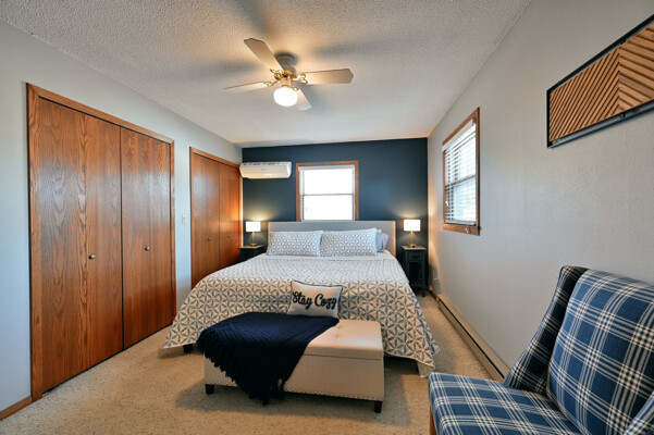 The Lively Loon comes with everything you need to relax and enjoy a peaceful vacation. Well stocked, new linens, several modern updates yet a cottage feel. There is a gas grill on the lakeside deck to keep the cook in touch with the crew. Circle around the firepit as you watch the sun go down. Did we mention this property offers southern exposure so you can take full advantage of your sunny days at the beach! A rowboat, kayaks, bicycles and bag toss are all included in your stay.