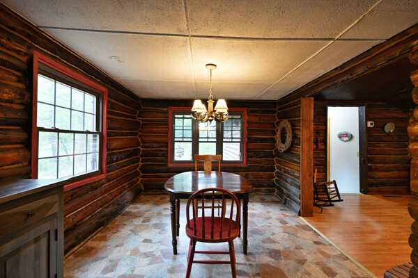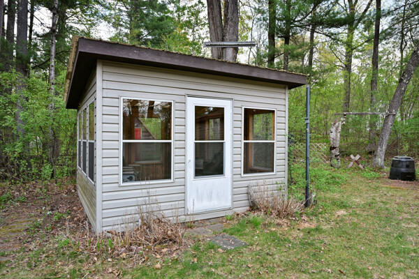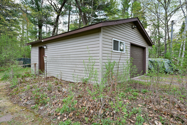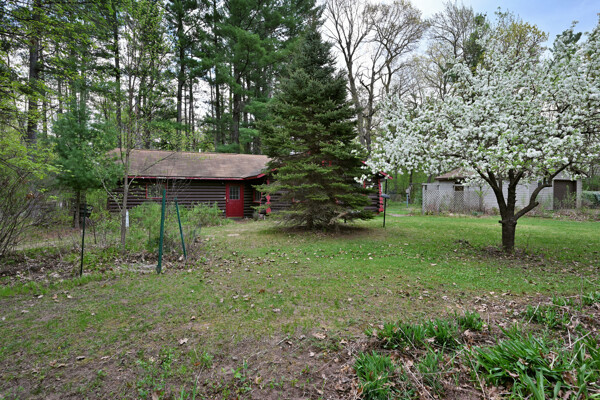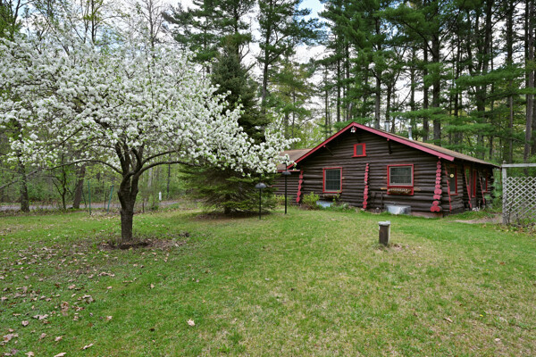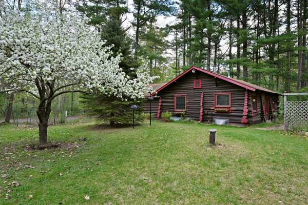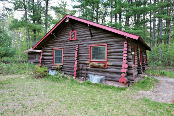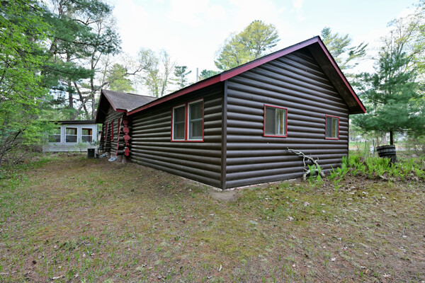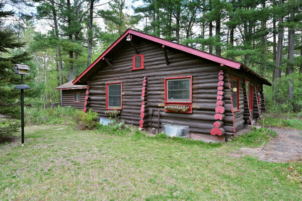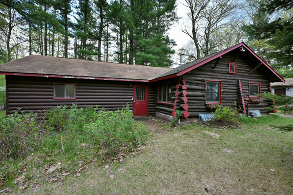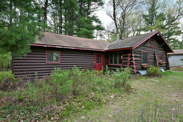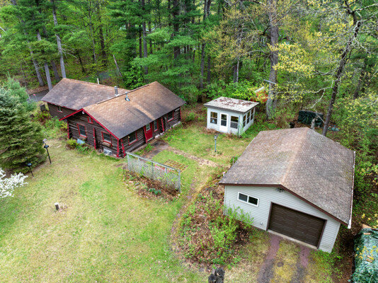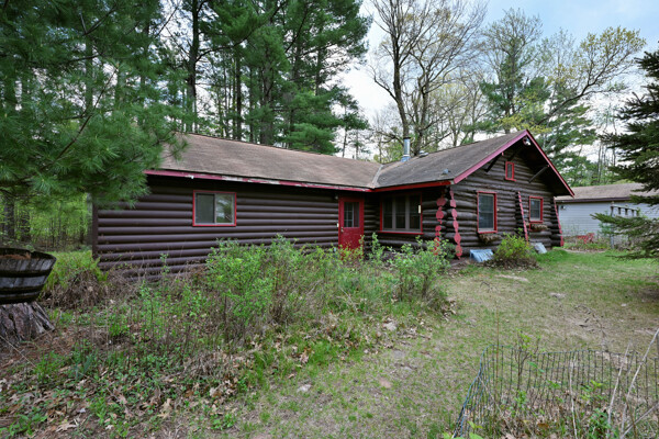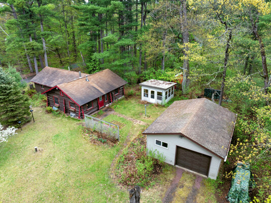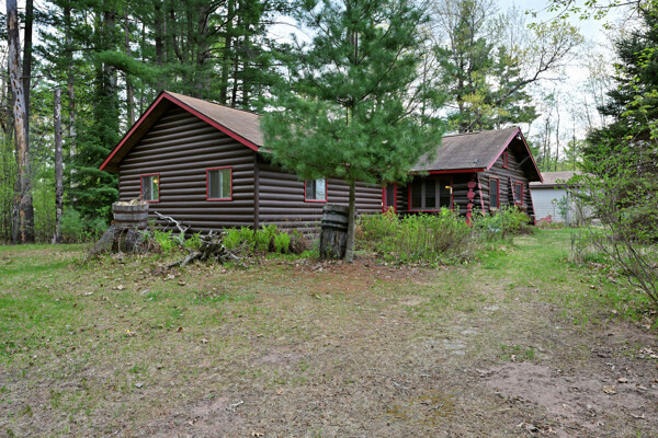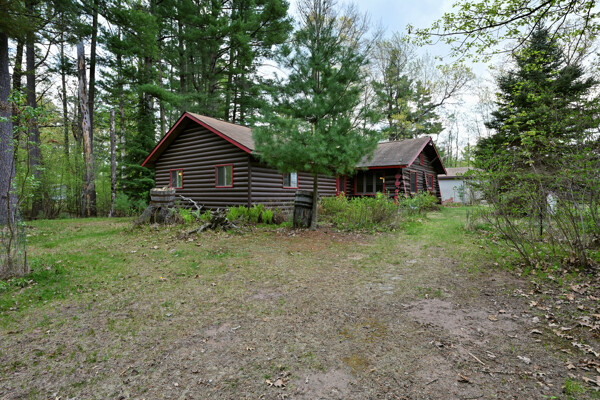 LOG CABIN CHARM YEAR-ROUND Nestled among white pine and birch, this cozy log cabin is just a few minutes walk from the beautiful Upper St. Croix Lake for year-round fun. Whether you plan to live here all four seasons, or purchase as a second home retreat, you will not be disappointed in the fun that welcomes you. Summer fun is in abundance with outdoor recreation, such as fishing, hiking, ATVing, or swimming at nearby Lucius Park beach. You will have plenty of room to store your recreational toys, and a boat launch and ATV trails are nearby. Winter will never disappoint you if you enjoy outdoor winter recreation, and ending your day snuggled in front of the wood burning stove to warm up and relax. This sweet treasure gives that old fashioned feel without giving up modern convenience. Home has forced air & Central Air, updated plumbing, newer well, and new hot water heater. Detached 24x20 garage, 18x6 lean-to, a small garden shed, and a 3-season porch. All set on a large corner lot.