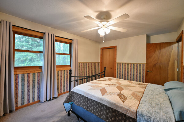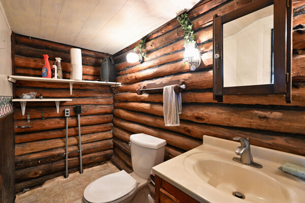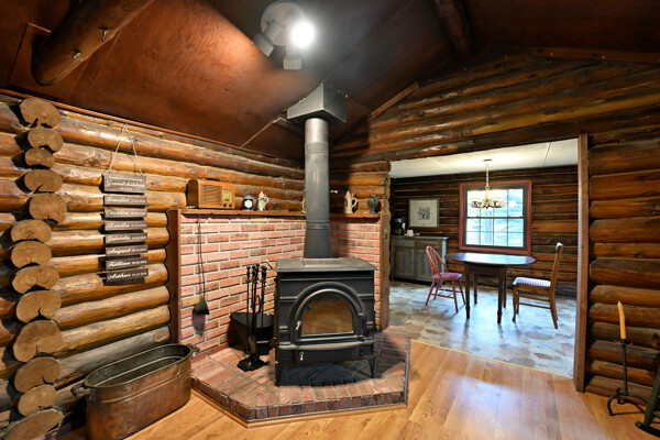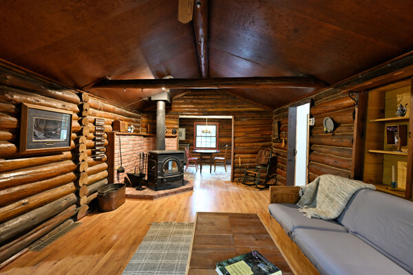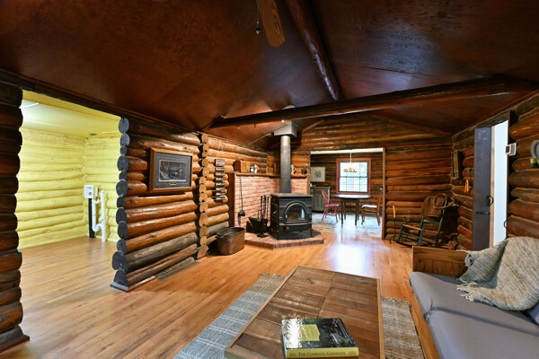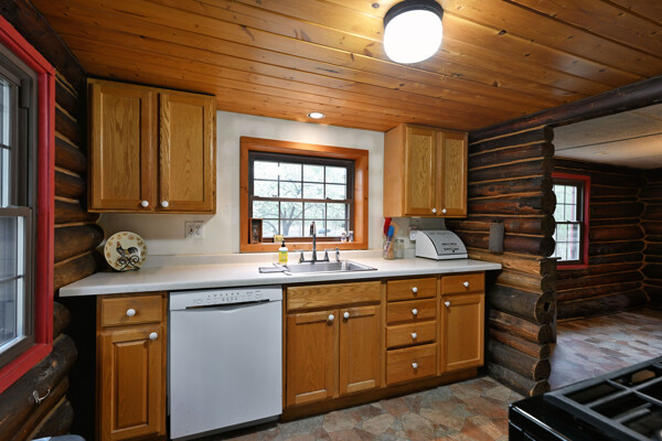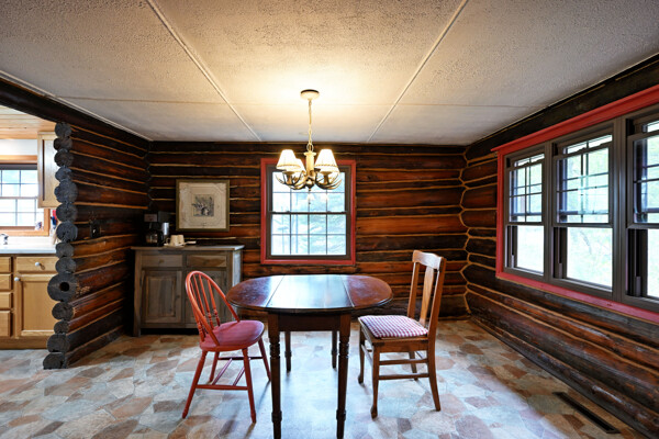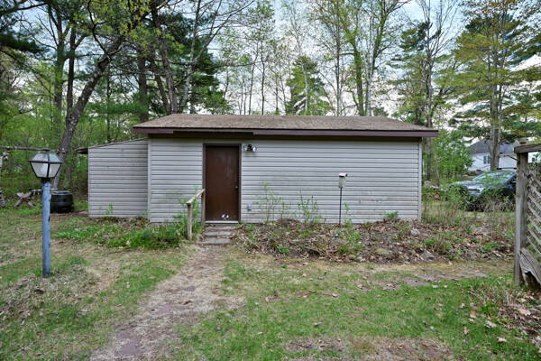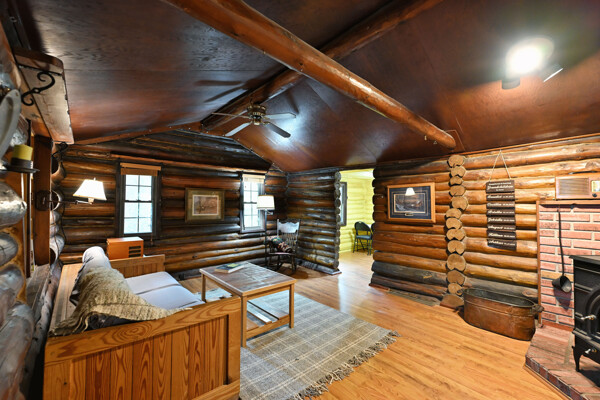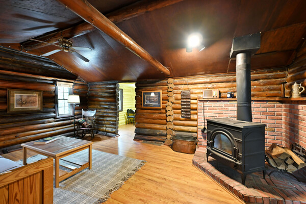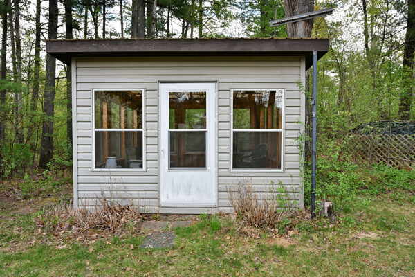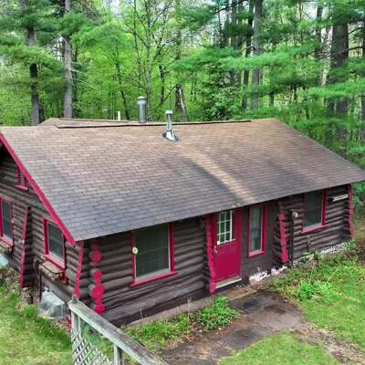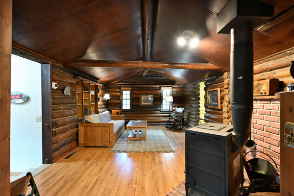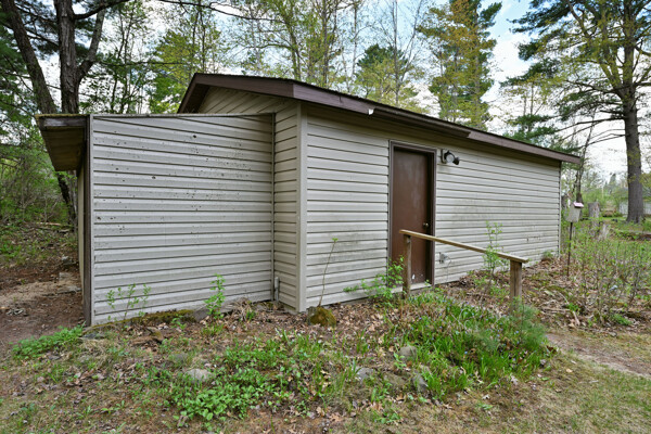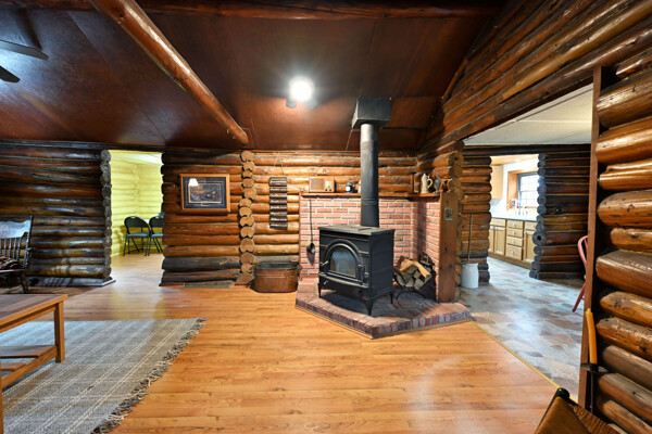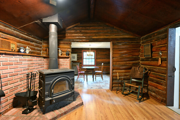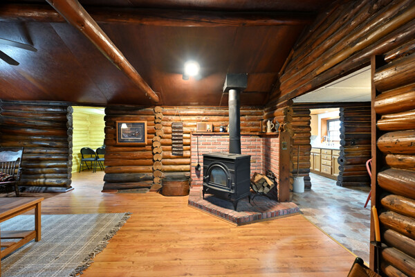 LOG CABIN CHARM YEAR-ROUND Nestled among white pine and birch, this cozy log cabin is just a few minutes walk from the beautiful Upper St. Croix Lake for year-round fun. Whether you plan to live here all four seasons, or purchase as a second home retreat, you will not be disappointed in the fun that welcomes you. Summer fun is in abundance with outdoor recreation, such as fishing, hiking, ATVing, or swimming at nearby Lucius Park beach. You will have plenty of room to store your recreational toys, and a boat launch and ATV trails are nearby. Winter will never disappoint you if you enjoy outdoor winter recreation, and ending your day snuggled in front of the wood burning stove to warm up and relax. This sweet treasure gives that old fashioned feel without giving up modern convenience. Home has forced air & Central Air, updated plumbing, newer well, and new hot water heater. Detached 24x20 garage, 18x6 lean-to, a small garden shed, and a 3-season porch. All set on a large corner lot.