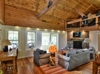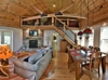 Big Red is a 4 bedroom lodge constructed with magnificent log timbers. The spacious, comfortably furnished great room has exposed timber beams, gas fireplace, flat screen TV and beautiful log dining table.
