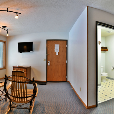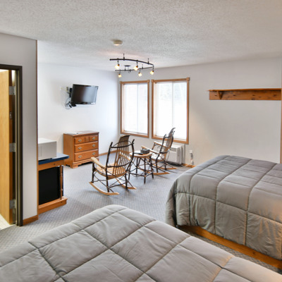 Whether you’re ATVing or snowmobiling, the hotel rooms offer instant access to trails, making it easy to take a break in your room or to warm up.