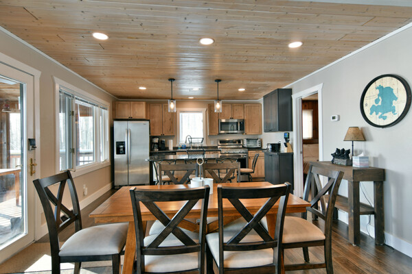 Beautifully remodeled dream home on Round Lake in Hayward, WI! The spacious lake home enjoys a magnificent southern vista overlooking Schoolhouse Bay on 3,000 acre Round Lake. Vacationers love this clear water lake in Northern Wisconsin for its excellent boating and fishing.