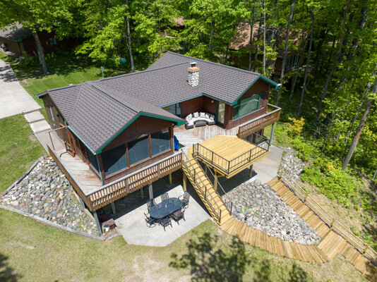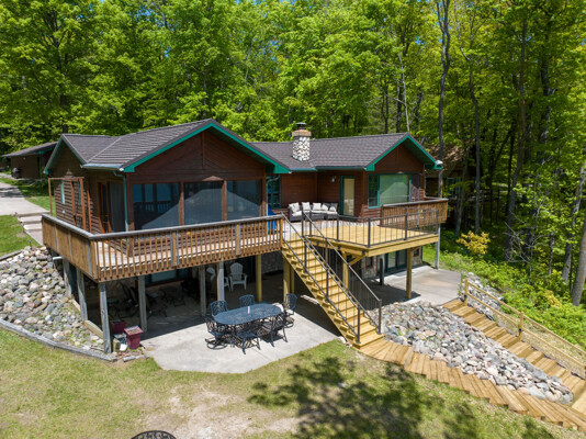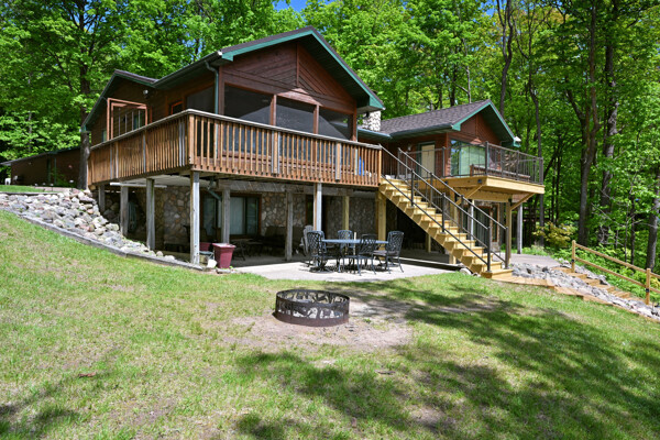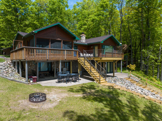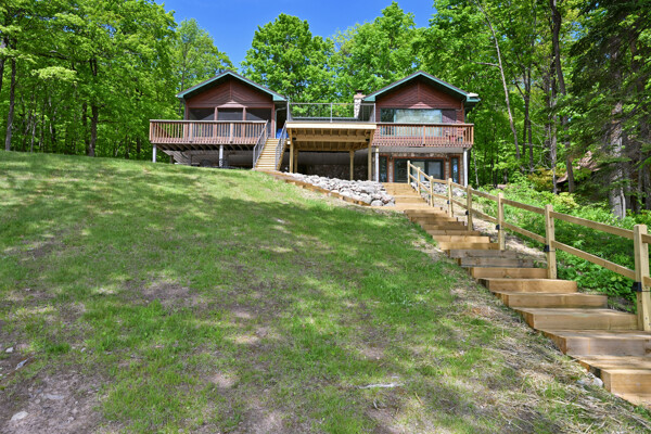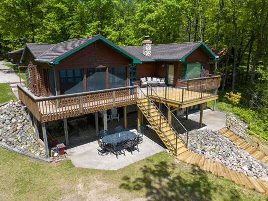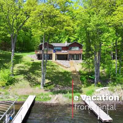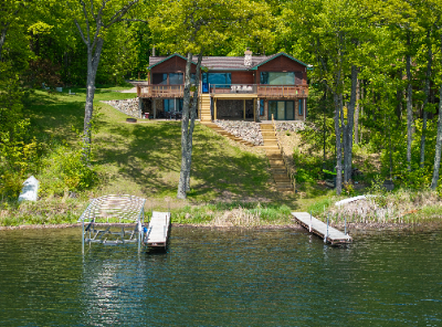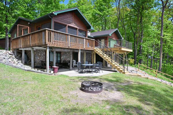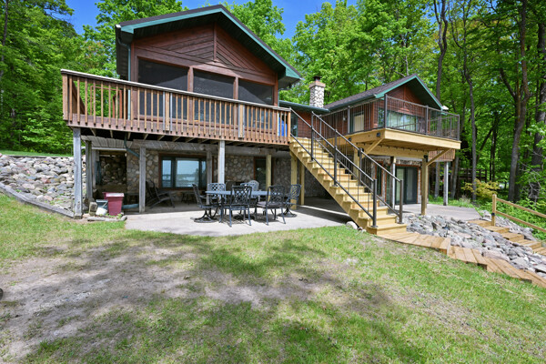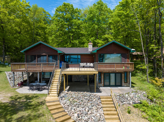 The waterfront home has 3 bedrooms and a bunk room, 3 full baths and sits on 2+ acres with 200 feet of lakeshore. A short paddle takes you to a public island in the lake that has a sand bar with the best swimming on the lake! Lounge and take in the view from the lakeside deck, patio and screened porch.