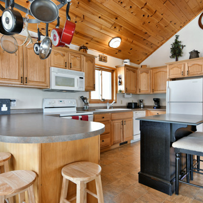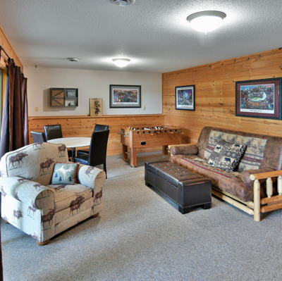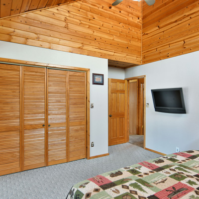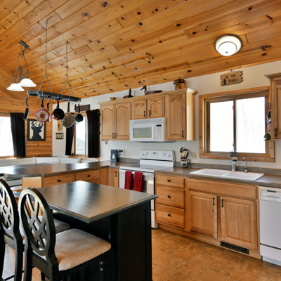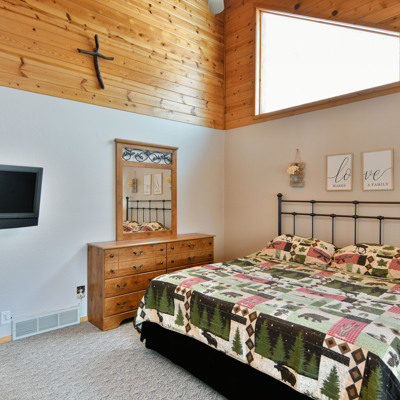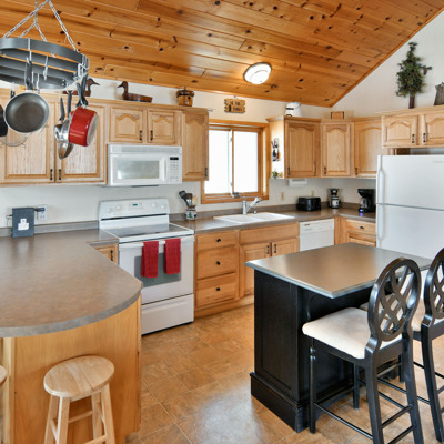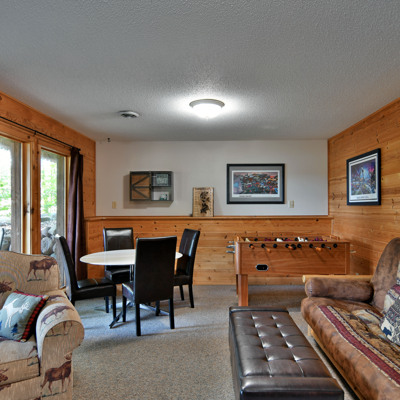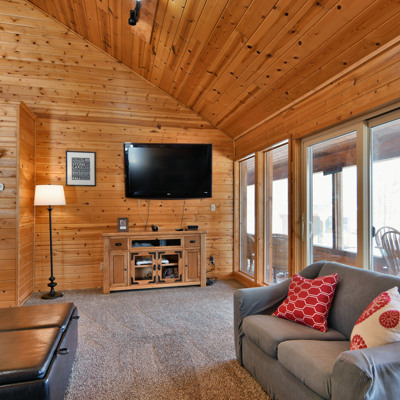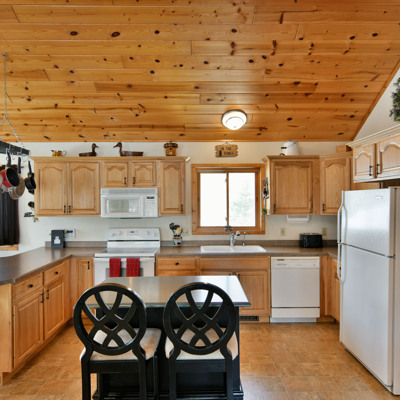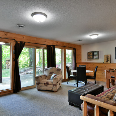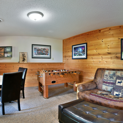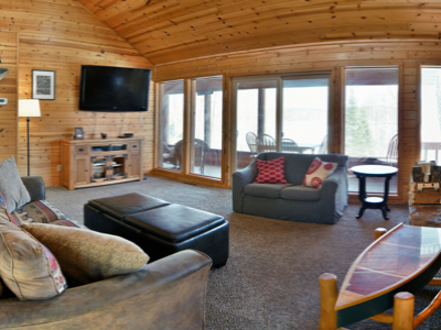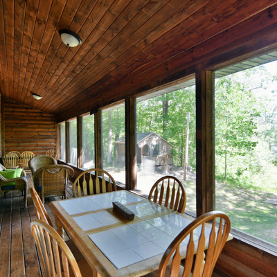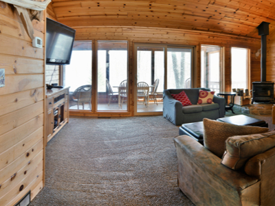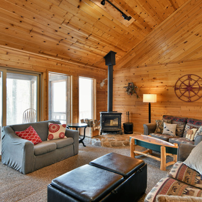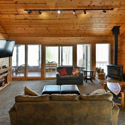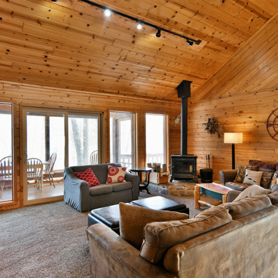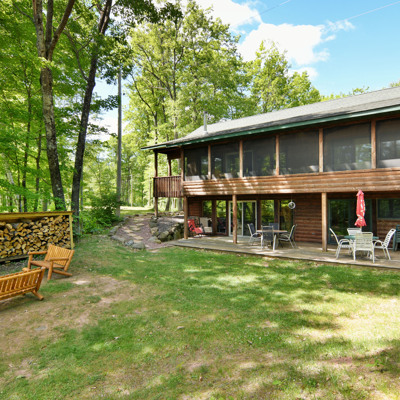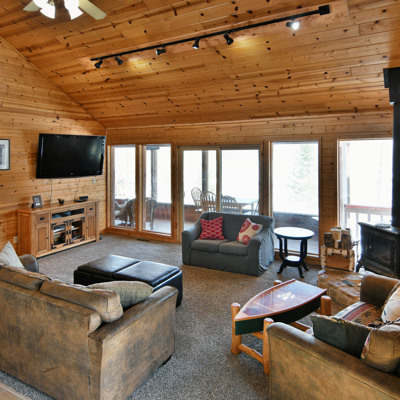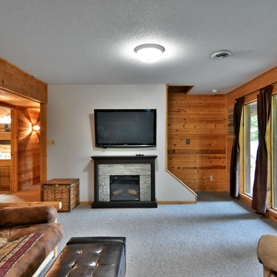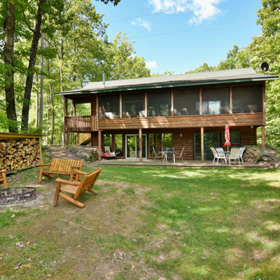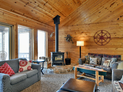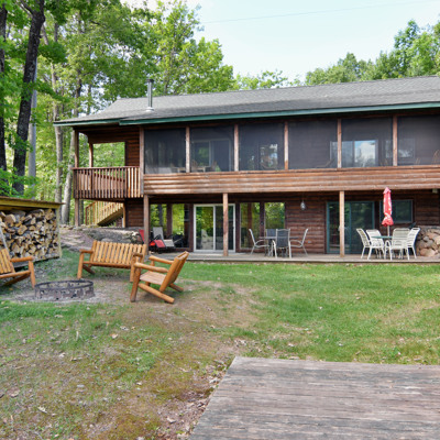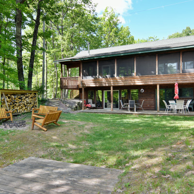 Enjoy the stunning lake view from the screened in back porch that extends across the entire length of the home! This chalet style 4 bedroom 2 bathroom log sided home is nestled down a private dead end road. Featuring a large open concept kitchen with all the amenities, large bedrooms, a spacious great room, and game room. The great room offers an extra large flat screen TV, ample seating, and cozy stove fireplace. The basement game room features fun for all! Game table, foosball, flat screen TV and electric fireplace. Laundry onsite and extra refrigerator for ample food storage. The home also has high speed internet/WIFI.