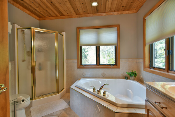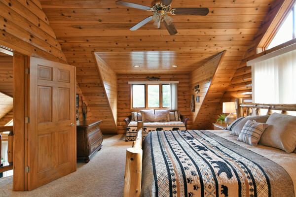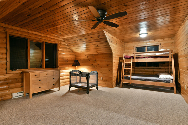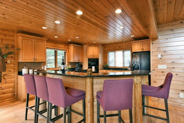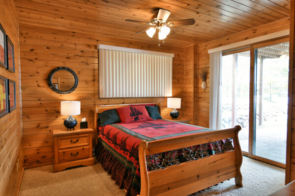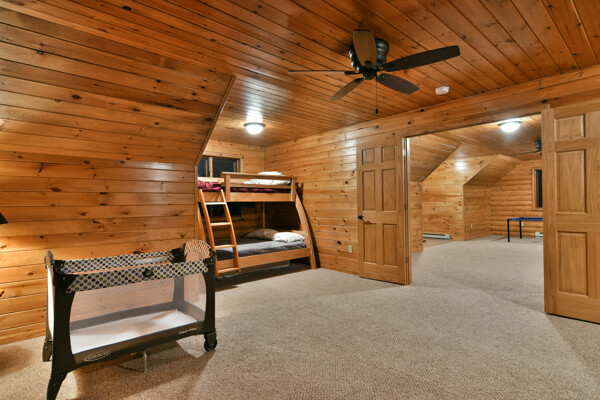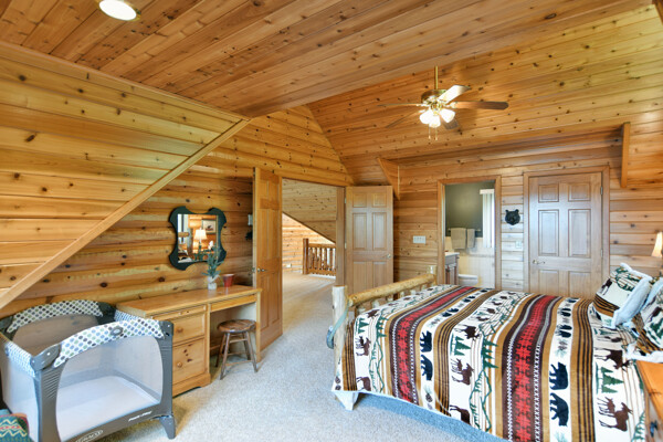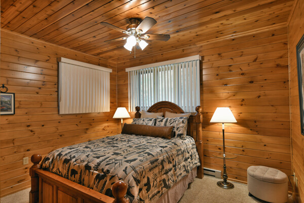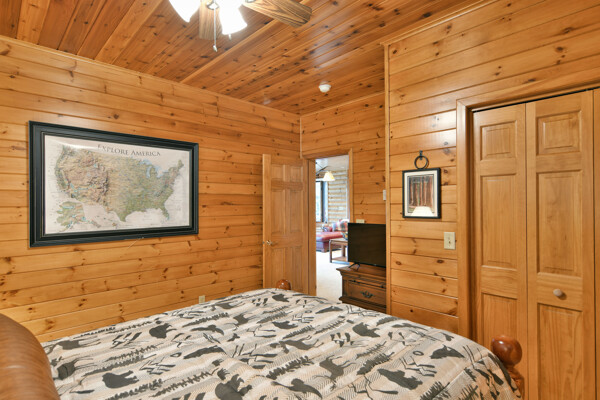 This gem leans into the cozy cabin feel with knotty-pine walls, stunning cathedral architecture and a grand stone-covered fireplace. Prepare meals in the gourmet, fully equipped kitchen. Three of the five bedrooms feature attached ensuite bathrooms making this home an excellent choice for large groups or multiple families who want both communal space and a private place to retreat.