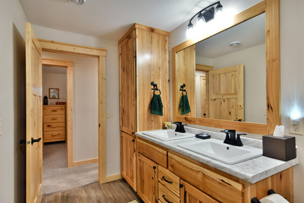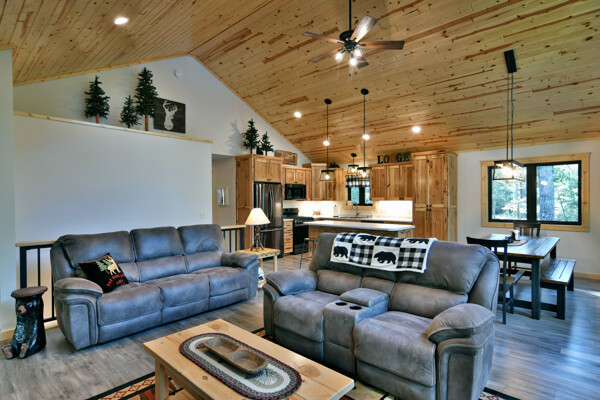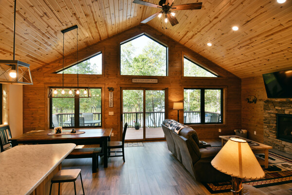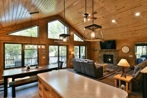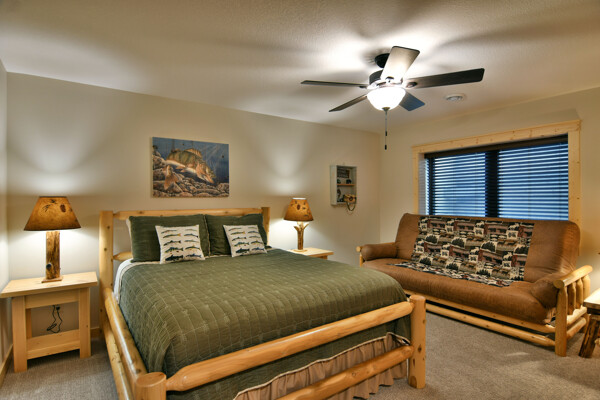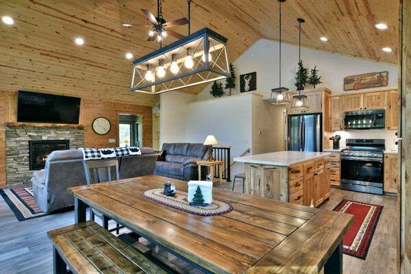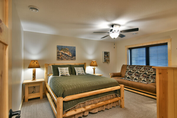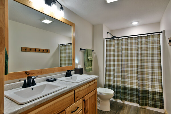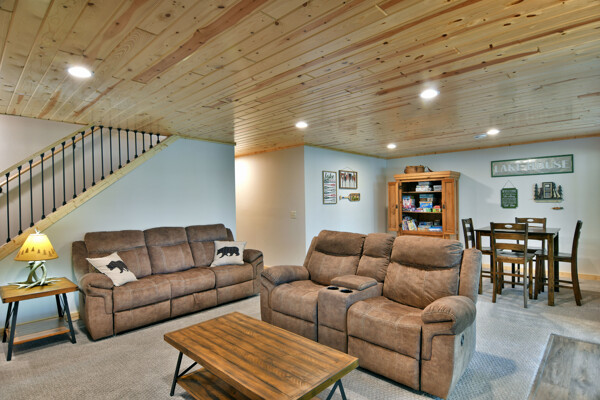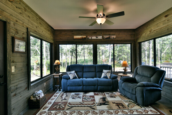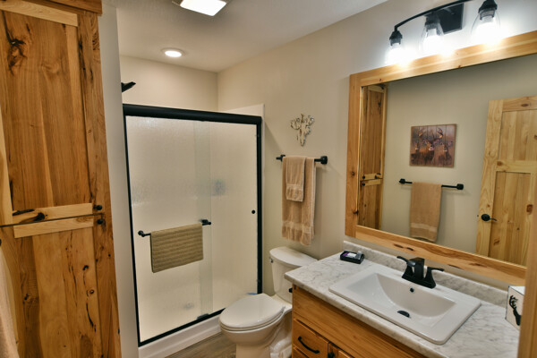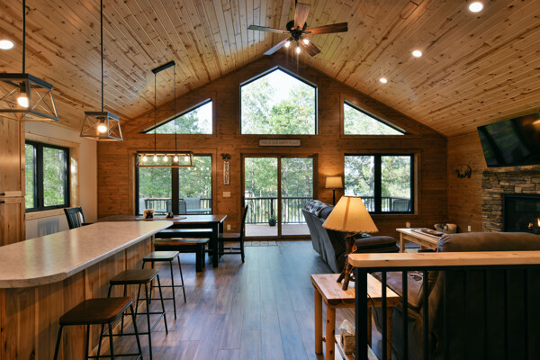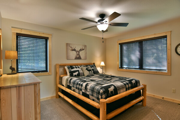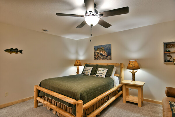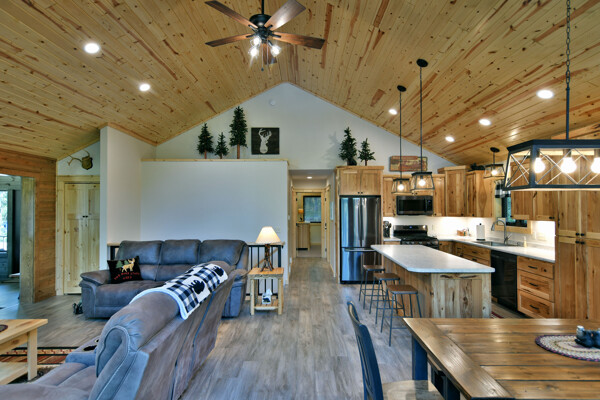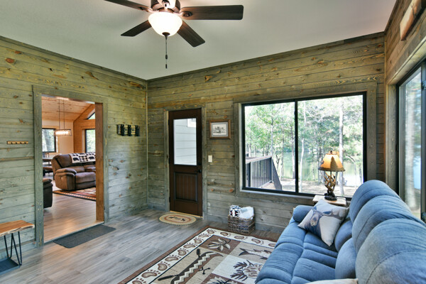 River Road Lodge- This beautiful 4 bedroom/3 bathroom cabin has been tastefully decorated for renters to enjoy! Everything has been thought of to ensure our renters can simply show up and enjoy their family/friend gathering. The main level consists of a large 4 season sitting room, living room with gas fireplace, large kitchen, queen bedroom, common bathroom, master bedroom/bathroom with king size bed. The lower level consists of a large family room with gas fire place, hutch filled with games, large bedroom with twin over full bunk bed, common bathroom, large bedroom with queen bed and futon and a laundry room equipped with washer, dryer and iron board. The backyard is level, perfect for yard games and large gatherings. Enjoy a fall evening fire in our fire pit or enjoy a quiet paddle in one of our four kayaks that are provided. Enjoy the Trego Nature Trail that is located 1 mile from the property.