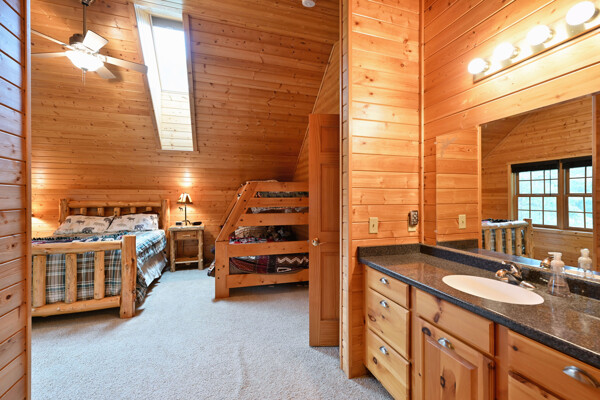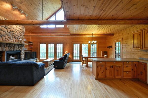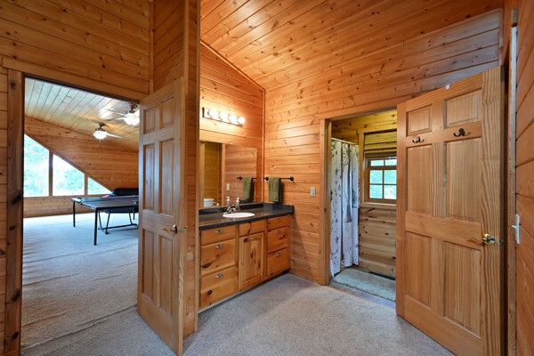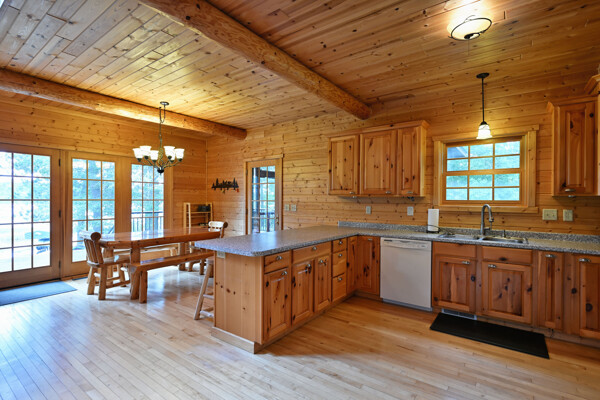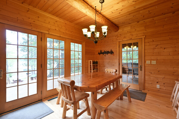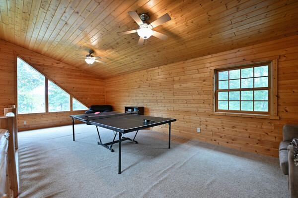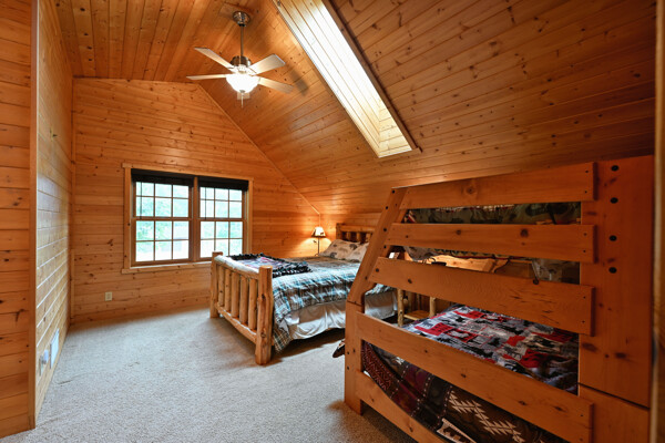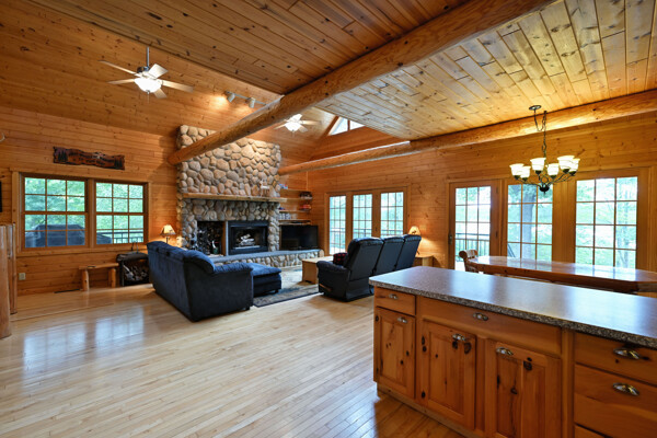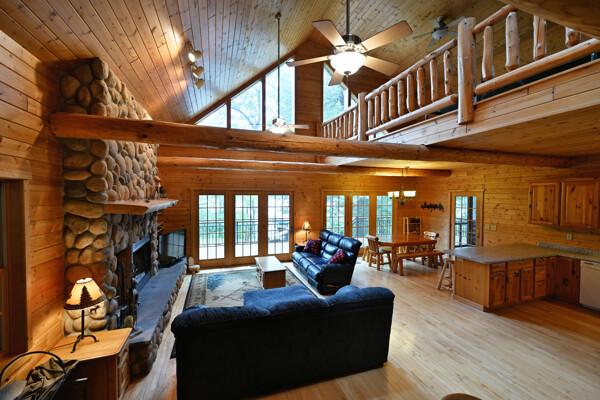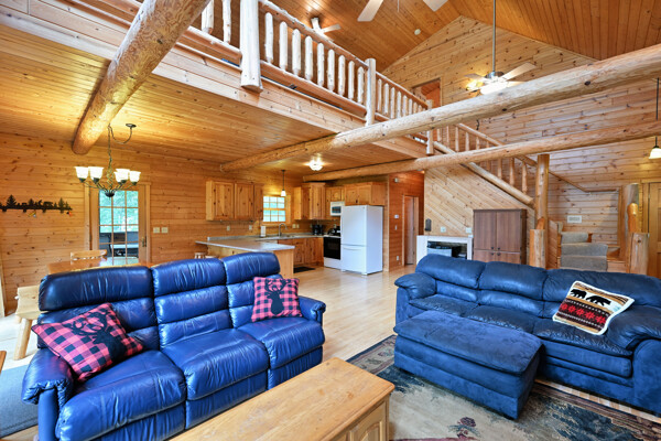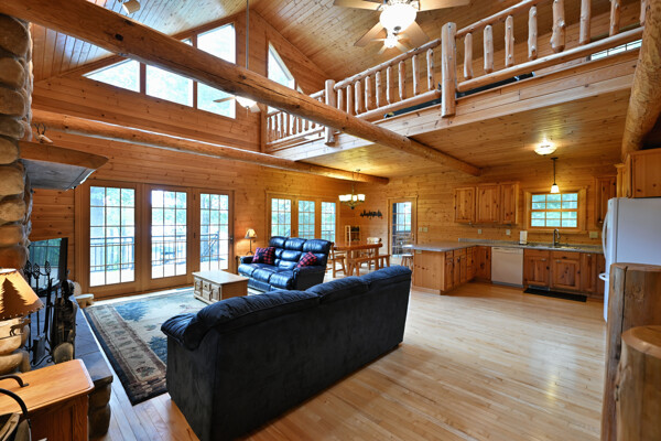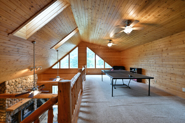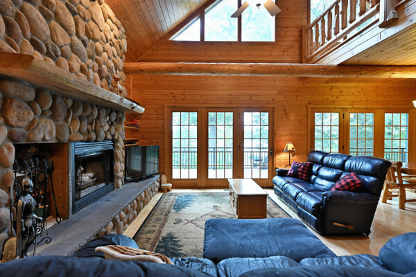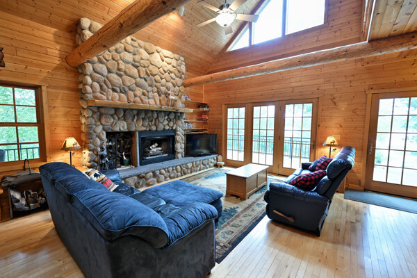 Discover a rare Northwoods retreat on 25 wooded acres with 1,567 feet of frontage on Lower McKenzie Lake. This beautifully crafted log-style chalet offers 4 bedrooms and 3 baths, featuring exposed log beams, a soaring great room with a stunning stone wood-burning fireplace, and a loft that overlooks the living space. The master suite in the loft provides a private escape, while the spacious finished lower level is perfect for guests and gatherings. Step outside to a rebuilt deck and railing that showcase panoramic views of the lake and surrounding forest. With abundant privacy, this property is bordered by Washburn County forest land-ensuring endless opportunities for recreation right out your back door. Hunt, fish, boat, and explore the northwoods, all from your own property. This is more than a cabin-it's a once-in-a-lifetime setting that combines acreage, water frontage, and Northwoods lifestyle in one exceptional offering.
