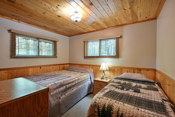 Bay Cottage is a warm and inviting, recently remodeled 2-bedroom, 1 bath log-sided cottage located in a wooded setting among tall maples, oaks and birch trees only feet from the shores of Lake Namakagon. Overlooking peaceful Junek’s Bay on Lake Namakagon, this updated cabin has 200 feet of lakeshore, a level yard and excellent fishing right off the private pier.