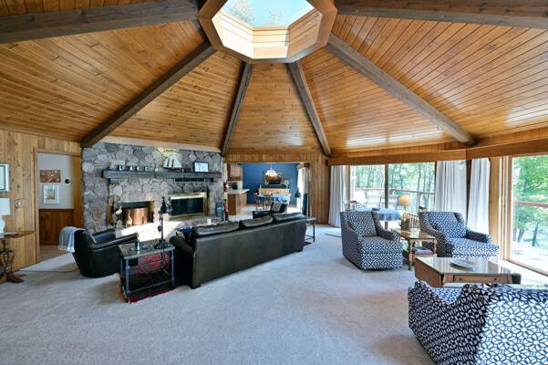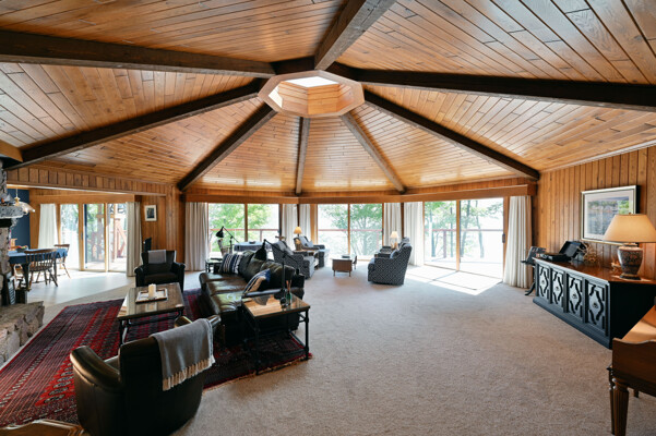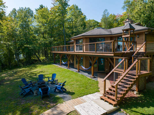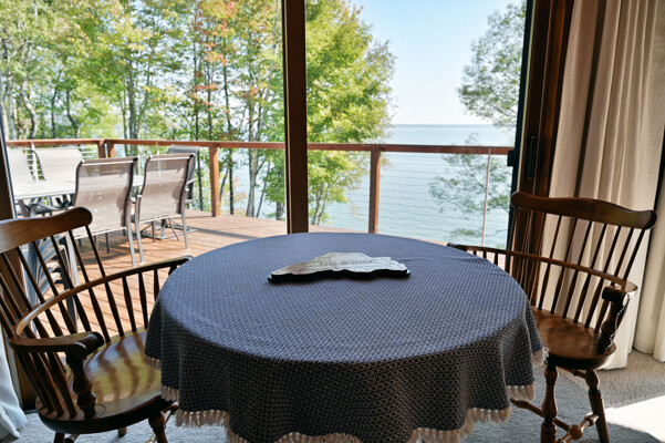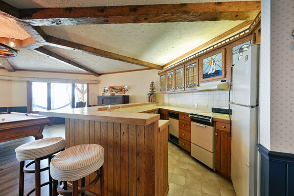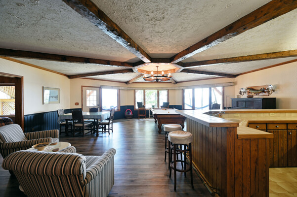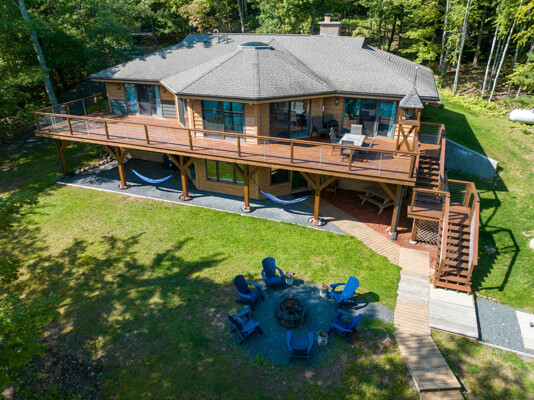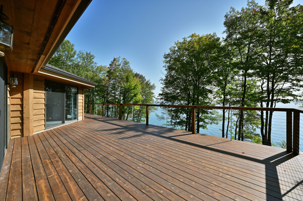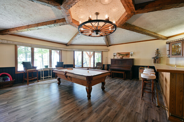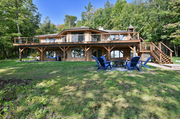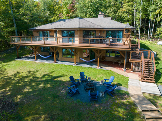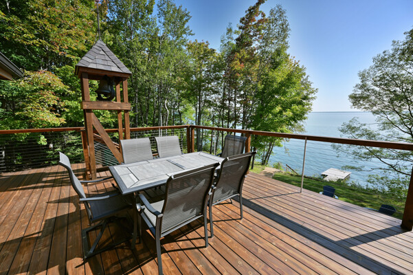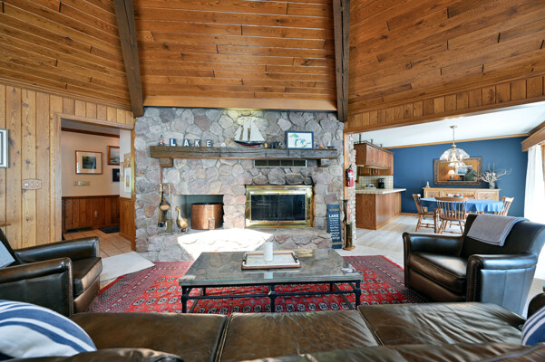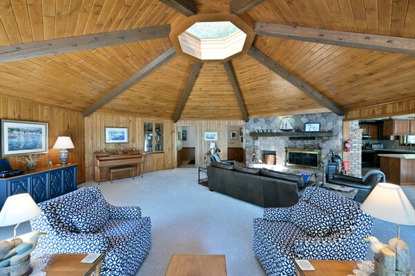 When you walk into this vast vacation home you will first be taken away when you see a large octagon shaped main living room area with amazing views of Lake Superior, a large stone fireplace, piano area, and comfortable chairs to just sit and look at the lake. Just off the main living room area you will be welcomed to both the spacious kitchen and dining room area or you can walk out on the 1,200 sq ft deck to catch the sunrises and to relax.