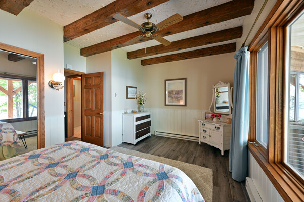 This well cared for vacation home consists of a first floor master suite with king bed featuring views of Lake Superior and the Apostle Islands and en-suite bathroom. A large walk in closet completes the master bedroom. There is a 2nd bedroom with queen bed with lake views located on the bottom floor walk out basement area of the home. A second bathroom with a tile shower is located just outside the 2nd bedroom. A third sleeping area with 2 twin beds also enjoys views of Lake Superior.