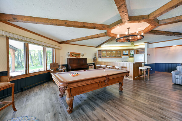 The 2nd level walk out basement area is an entertainers dream as it also has views of Lake Superior. Enjoy time sitting in front of a 2nd large brick fireplace or in the pool hall playing piano or a game of pool. The 2nd level also hosts an additional kitchen plus a separate TV room with cable TV and internet and a pull out couch.