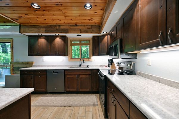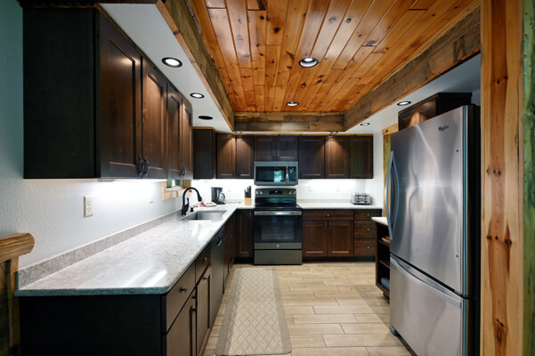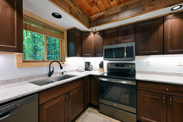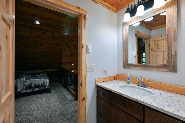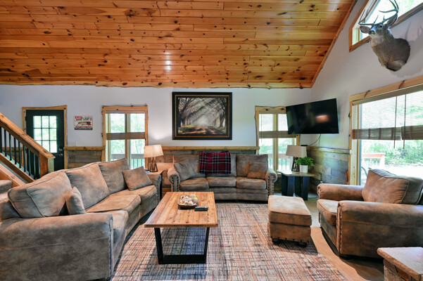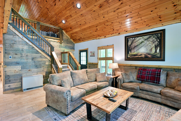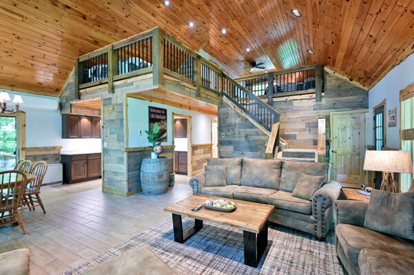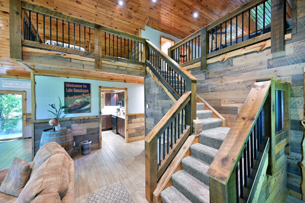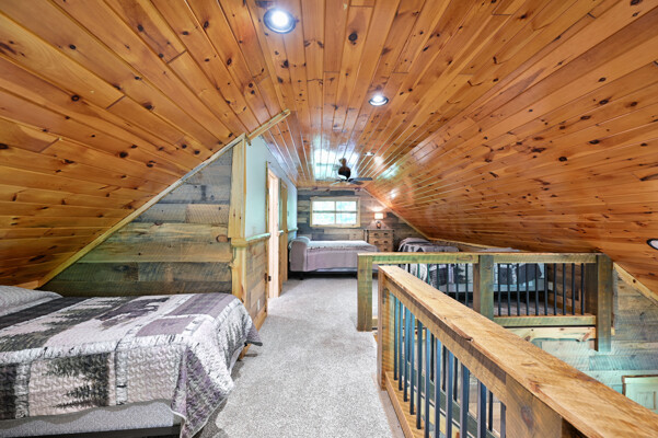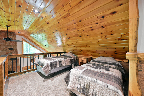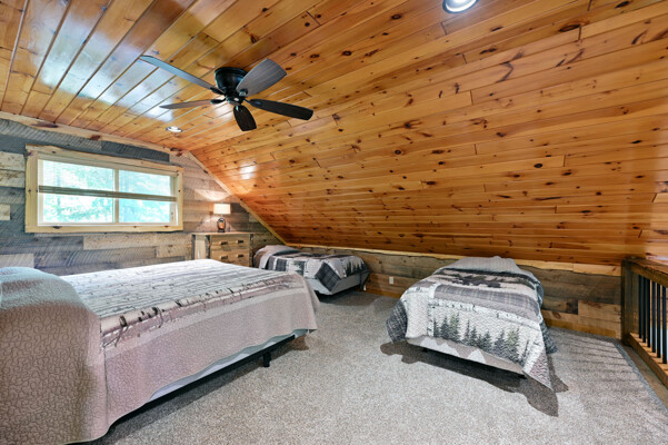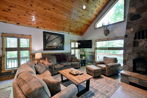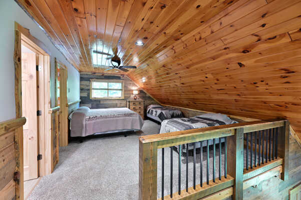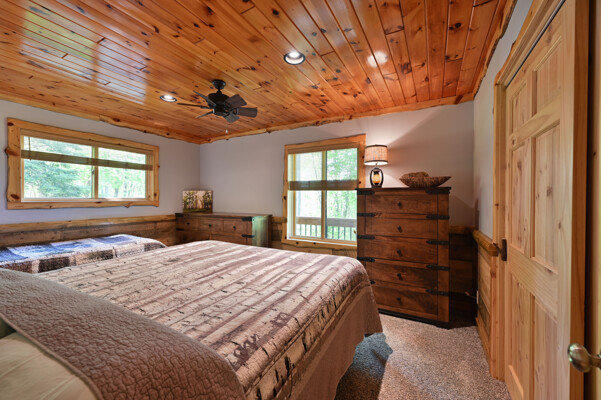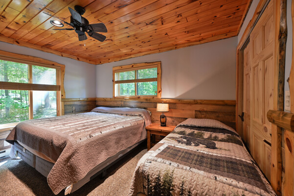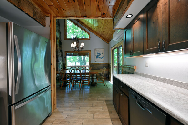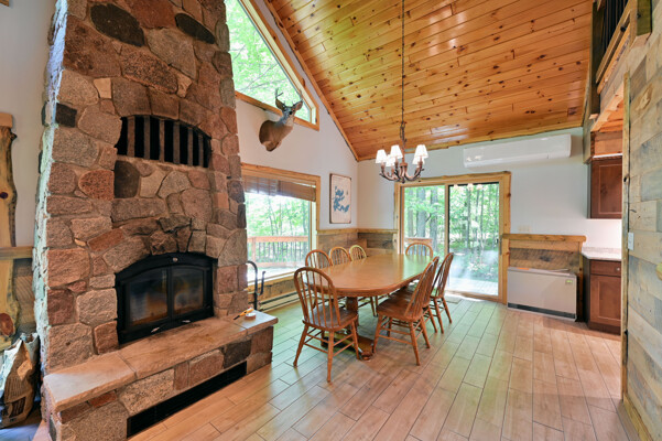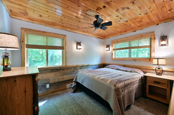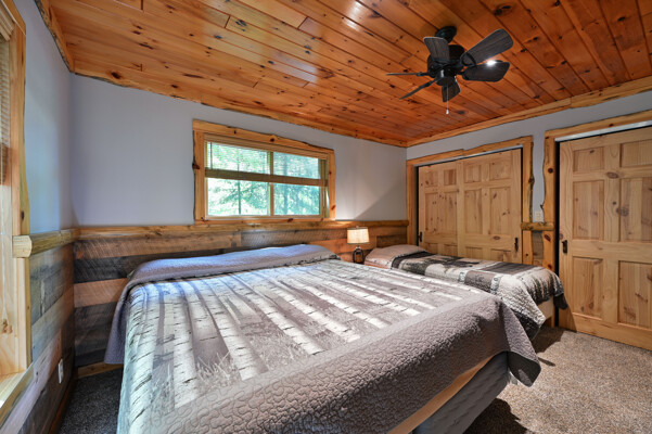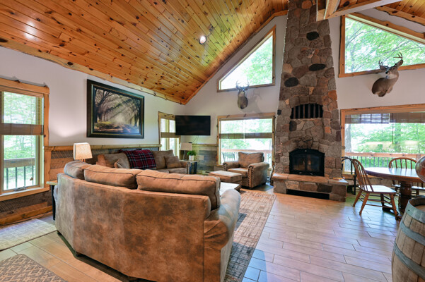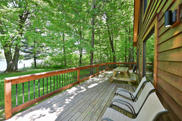Bayview Loft has 400 feet of beautiful lake frontage, large wrap around deck and is handicap accessible. Cedar exterior and knotty pine interior with two-story, split stone fireplace. 2800 square feet of living space with 3 bedrooms (10 beds), large loft and spacious kitchen, phone, Cable TV.