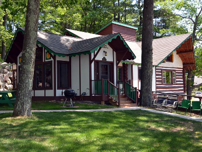 The Chateau features a large living room with a natural stone fireplace and cathedral ceiling, a newly remodeled large kitchen, a spacious dining area, also with a cathedral ceiling, and a screen porch. The stucco and full log and chinking cabin features wood paneling throughout. Beneath oaks, maples, and pines it offers relative privacy with favorable views of the Lake and close access to the shore. The Chateau provides a spectacular view of the sun setting over the Lake Namakagon narrows.