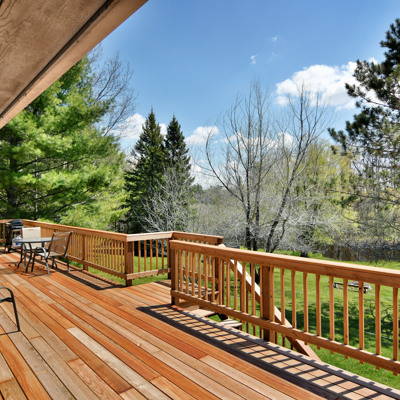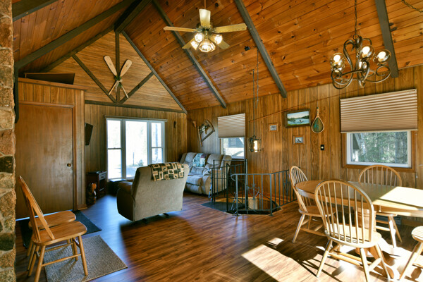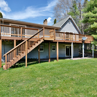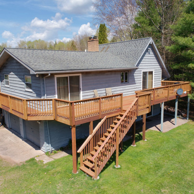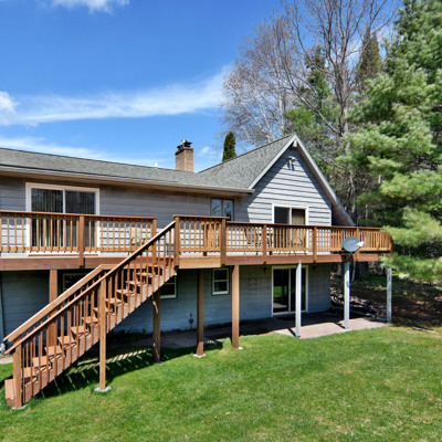 The rental home sits on 350 feet of the West Fork of the Chippewa River and has a large, south-facing back yard. The river is navigable by kayak or canoe, and you can paddle right into Upper Clam Lake. There are numerous lakes nearby, miles of great trails and thousands of acres of National Forest to explore.