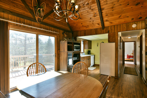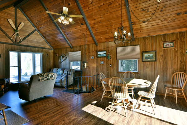 The Pony Express Lodge is a three bedroom, 2 full bath vacation rental located conveniently on the snowmobile trail and within walking distance of downtown Clam Lake. The 1,700 square foot home has open living spaces with 3 main floor bedrooms, living room and kitchen/dining area with walkout to wraparound deck overlooking the river. The 3 main floor bedrooms each have a queen bed in them.