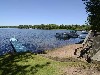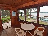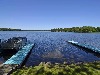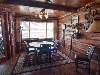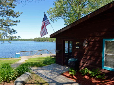 Pontoon included! Three-bedroom deluxe cabin on Round Lake with two queen beds, two twin beds, lake front on Big Round, single story, one bath with whirlpool jets, one gas fireplace.
