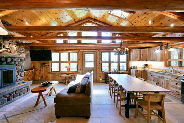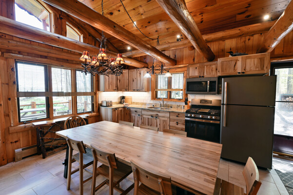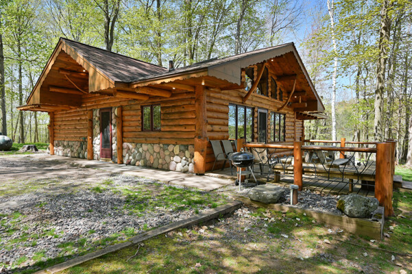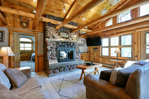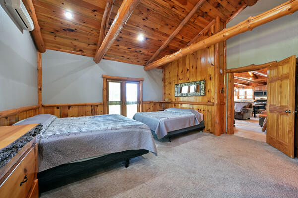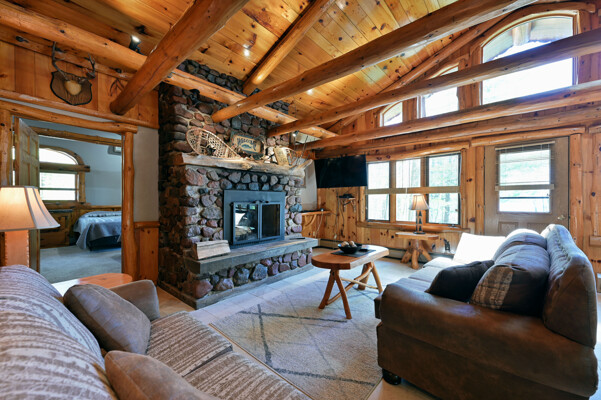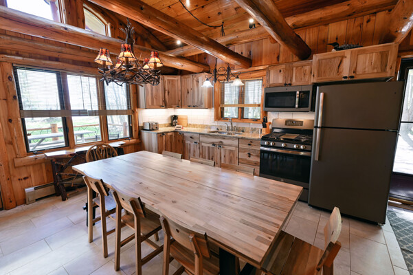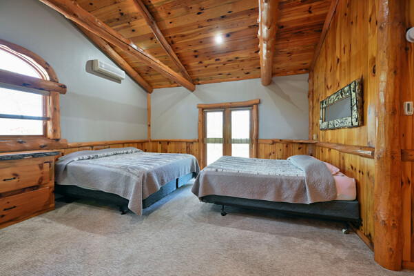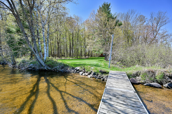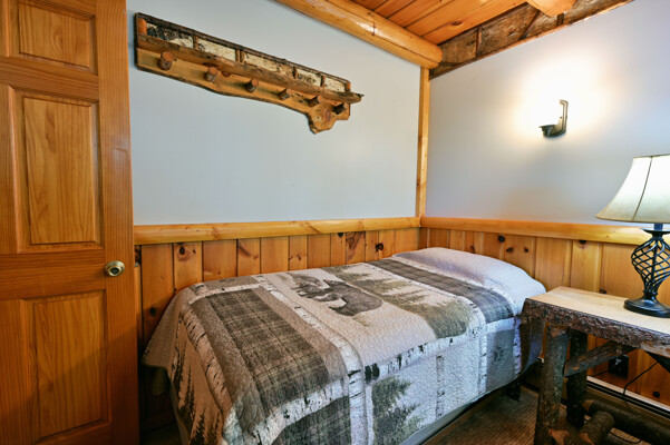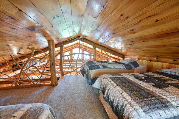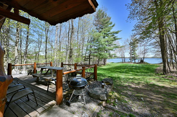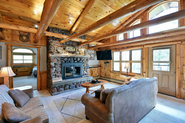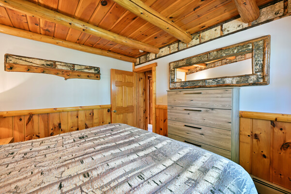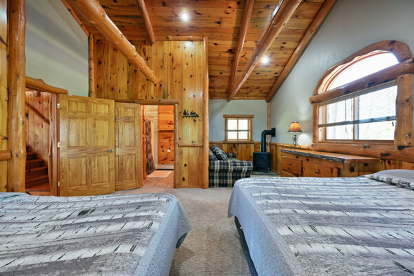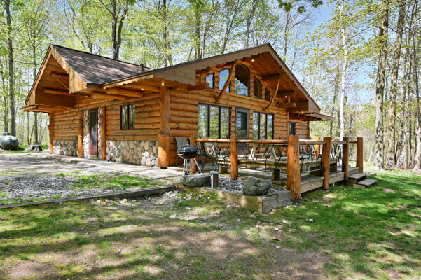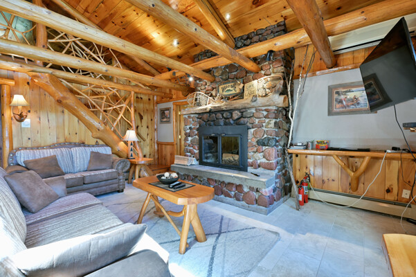 Lakeside Loft has 500 feet of lake frontage, a deck overlooking the lake and large yard, log exterior, knotty pine interior with unique log beams and accents. 1800 square feet of living space with 3 bedrooms + loft (9 beds), 2 full baths, phone, Cable TV and is handicap accessible.