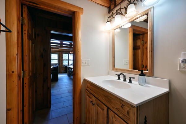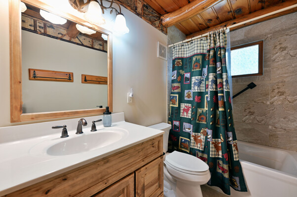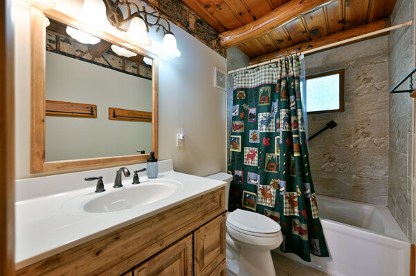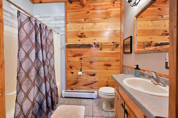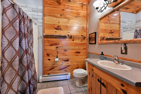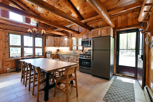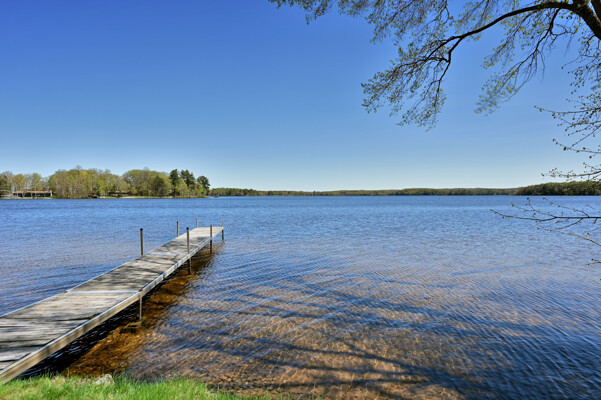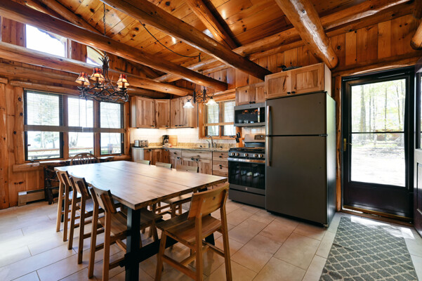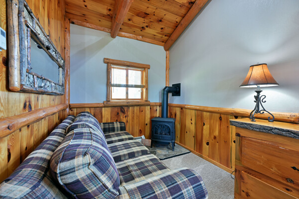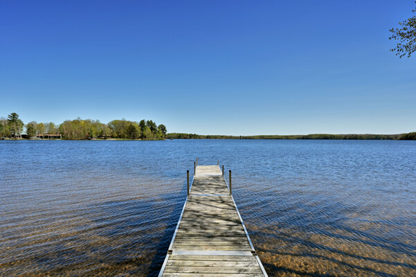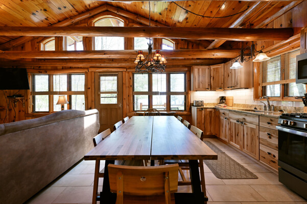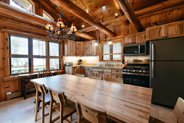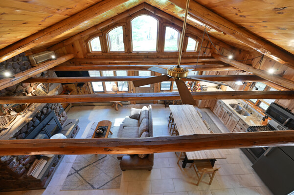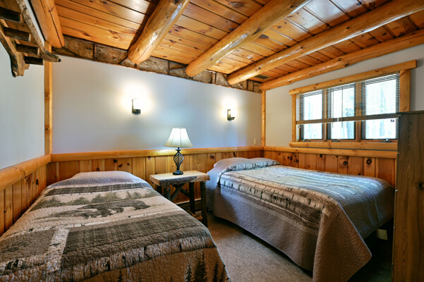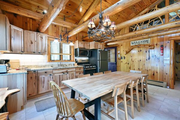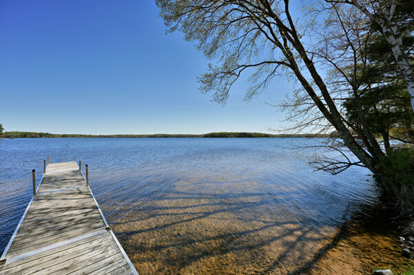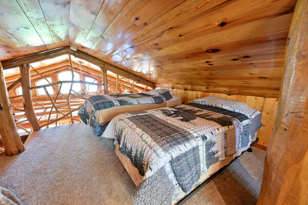 Lakeside Loft has 500 feet of lake frontage, a deck overlooking the lake and large yard, log exterior, knotty pine interior with unique log beams and accents. 1800 square feet of living space with 3 bedrooms + loft (9 beds), 2 full baths, phone, Cable TV and is handicap accessible.