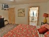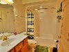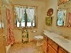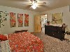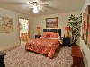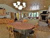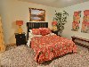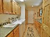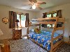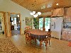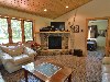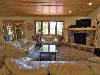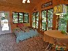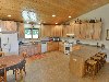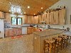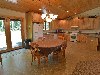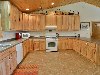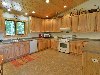 The open great room has wonderful lake views and a carpeted living room area with comfortable sofa and loveseat surrounding a stone, gas fireplace. The Cable TV set and VCR player sit above the fireplace. The large, open kitchen with tile floor has a gas stovetop and oven, dishwasher, microwave, coffeemaker, toaster and refrigerator and freezer. Cozy up to the kitchen counter on a stool or enjoy a meal and conversation at the dining room table or in the sunroom.