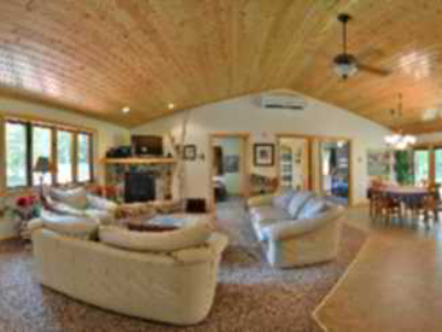 The Namakagon Landing rental home offers wheelchair accessible lodging on beautiful Lake Namakagon and Namakagon River in Cable, Wisconsin. This recently built air-conditioned vacation home rental features a barrier free open layout all on one level with DSL Wi-Fi Internet access. The rental home has a wheelchair accessible bathroom and shower and most beds are of wheelchair compatible heights.