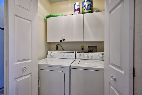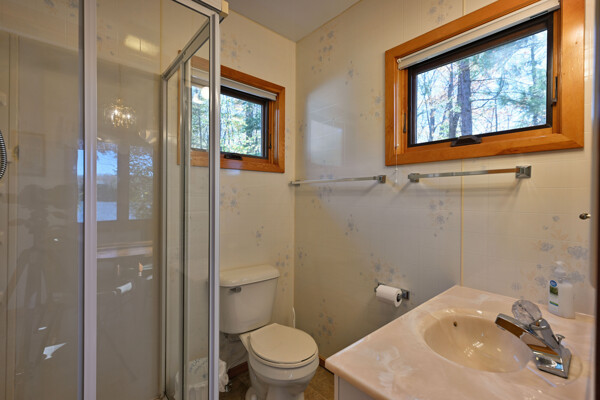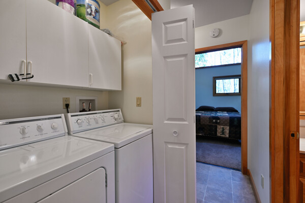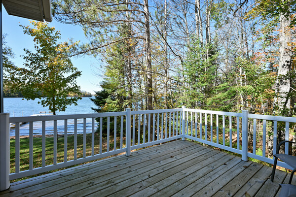 The bright, open kitchen is fully equipped including new kitchen appliances and washer and dryer. There are 2 full bathrooms. The spacious lakeside bedroom has a king bed and walkout deck. The second bedroom has a queen bed and a twin bed.