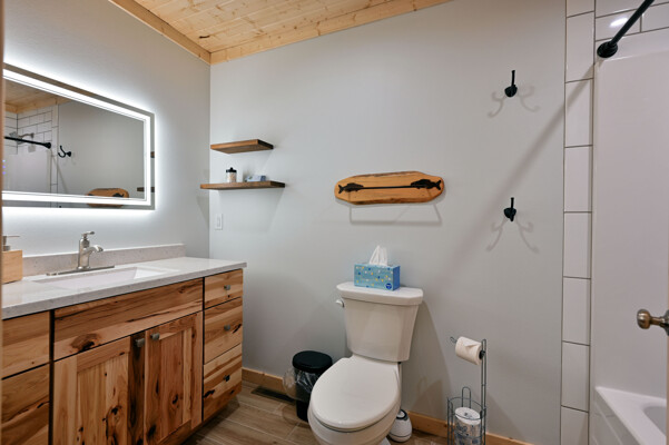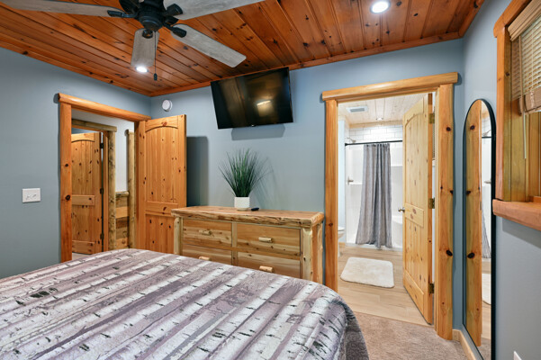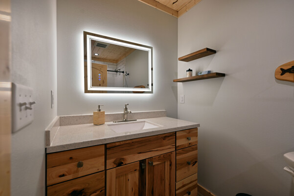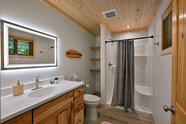 The two spacious bathrooms feature lighted and heated mirrors, and additional USB ports. The cabin has forced air heating and air conditioning throughout to keep you comfortable year round.