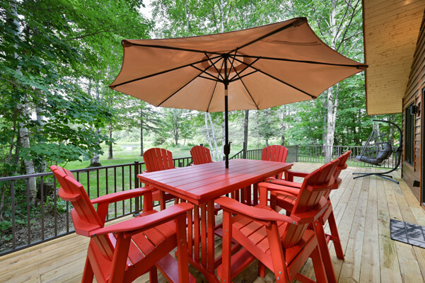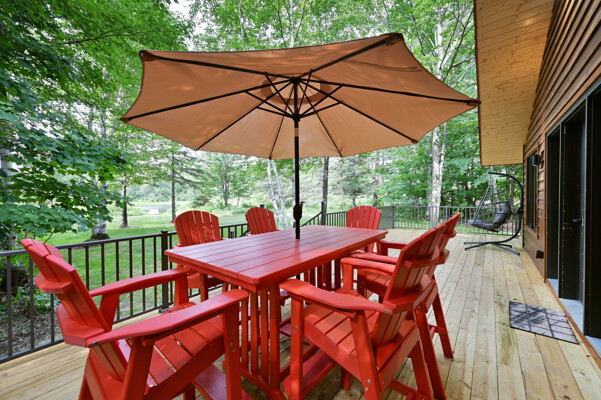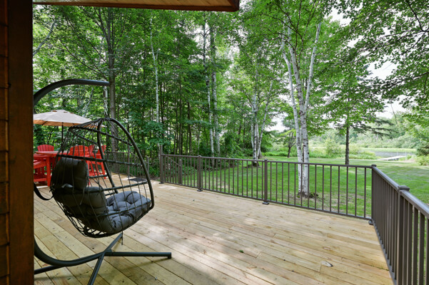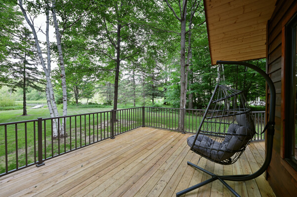 Enjoy the scenic river views from the large wraparound deck with ramp, new patio furniture, and Weber charcoal BBQ grill. The grassy, riverside yard leads down to a dock. There is an electric hookup down by the dock for charging your boat (we suggest you bring a 50+ ft extension cord with you). Fish from the dock, paddle the river or motor out to the lake for a fun day on one of Northern Wisconsin’s premier lakes!