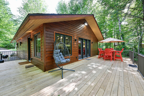 Tucked beneath the trees on the shores of the scenic Namakagon River sits the newly remodeled Spruce Cabin. The recent makeover of this 3 bedroom, 2 bath cabin beautifully blends contemporary amenities with the cozy, rustic touches you expect in a comfortable Northwoods getaway.