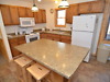 The kitchen with all the essentials has an electric stove, oven, full size refrigerator/freezer, coffeemaker, toaster and microwave. There is a dining room table and kitchen island with stools offering plenty of counter space for meal preparation and enjoyment.